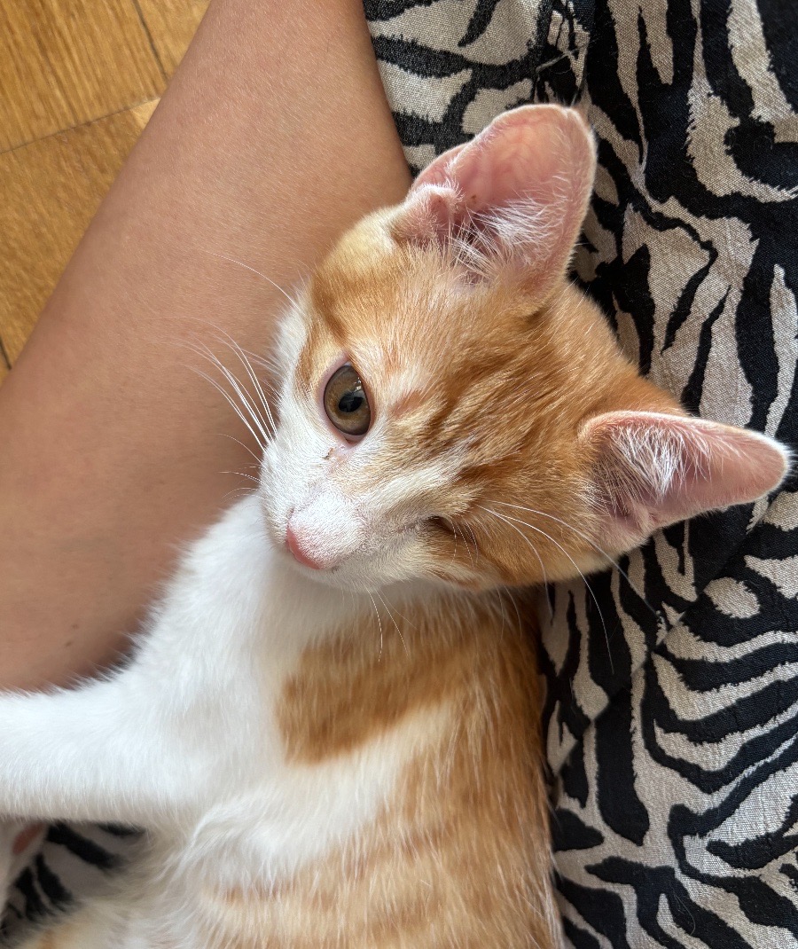 Il a depuis été adopté et mène une vie de câlins et de bonheur avec un copain chat et sa famille d’adoption.
