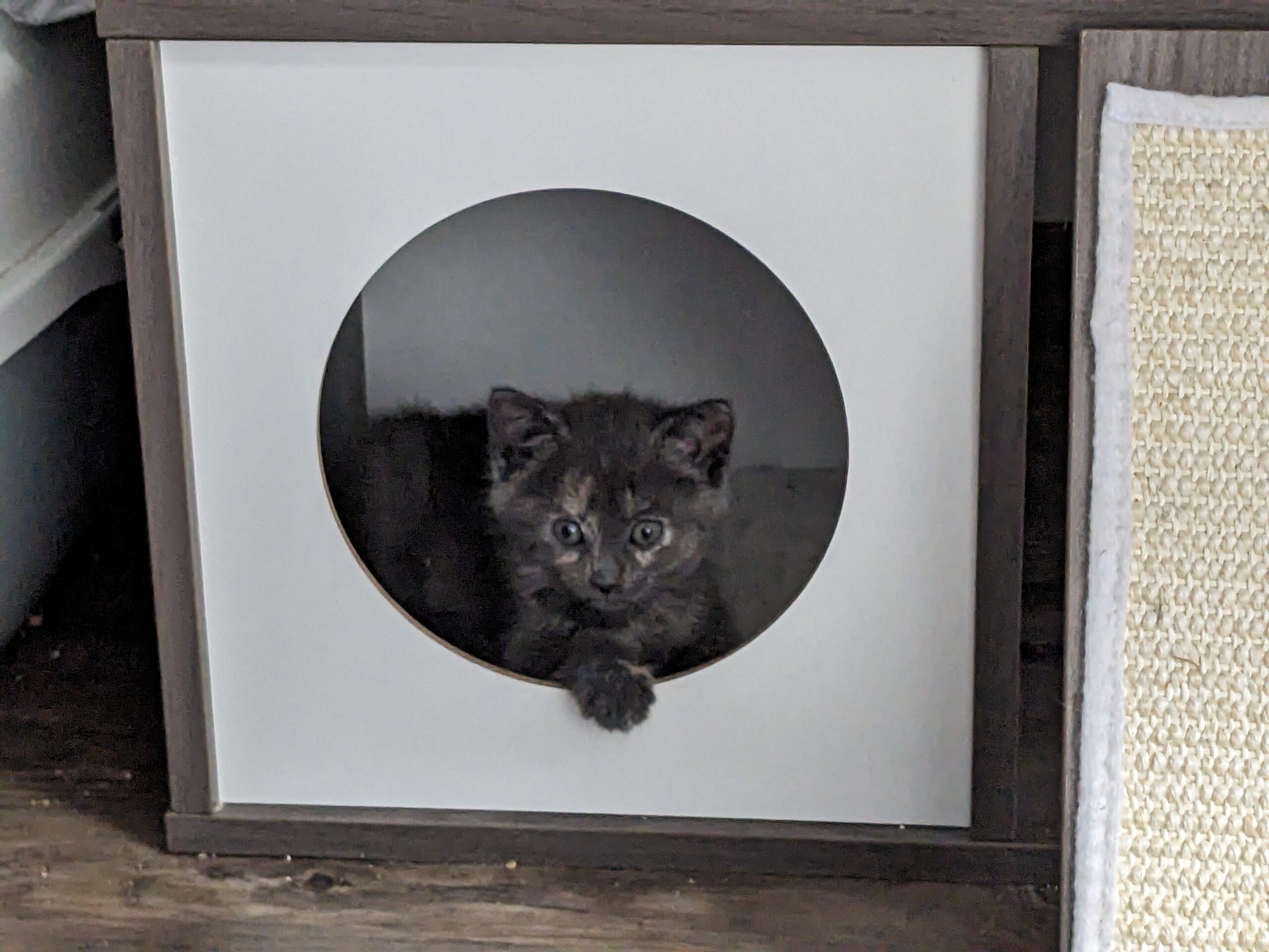 Il a depuis été adopté et mène une vie de câlins et de bonheur avec un copain chat et sa famille d’adoption.
