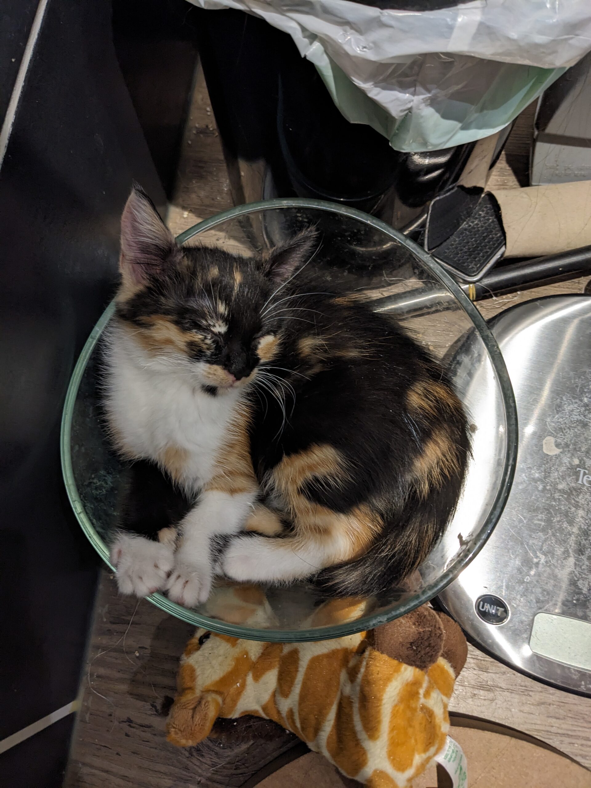 Gipsy est une jeune femelle , écaille de tortue qui est née  approximativement  autour du 1er octobre 2024. Elle a été trappée avec ses 3 chatons .