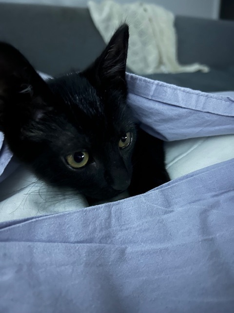 Quand elle a été adoptée, j’en ai pleuré. Ce petit trésor rescapé allait me manquer. Ses ronrons super forts et ses courses poursuites avec mes chats... son pelage tout doux et fascinant... sa petite tête expressive... Mais tel est le job de famille d’accueil...