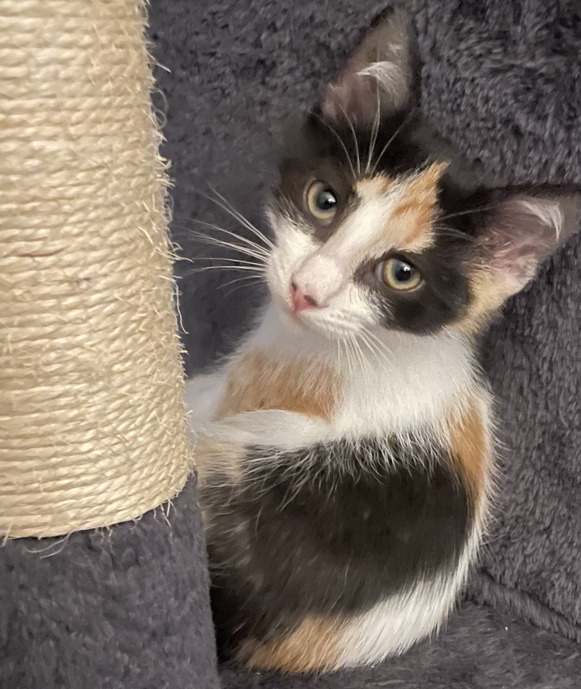Gipsy est une jeune femelle , écaille de tortue qui est née  approximativement  autour du 1er octobre 2024. Elle a été trappée avec ses 3 chatons .