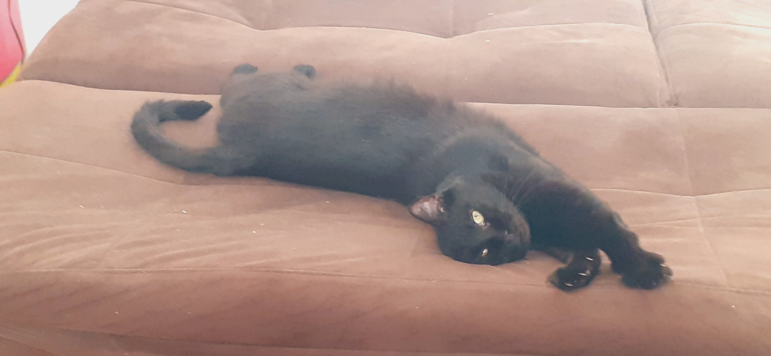 Mise en sécurité rapidement, elle est arrivée toute timide, ne semblant pas connaitre le confort d’une maison. Elle a dormi à même le sol les premiers jours, avant de se rendre compte que le coussin serait plus confortable, et plus longtemps encore avant d’oser monter sur le canapé.