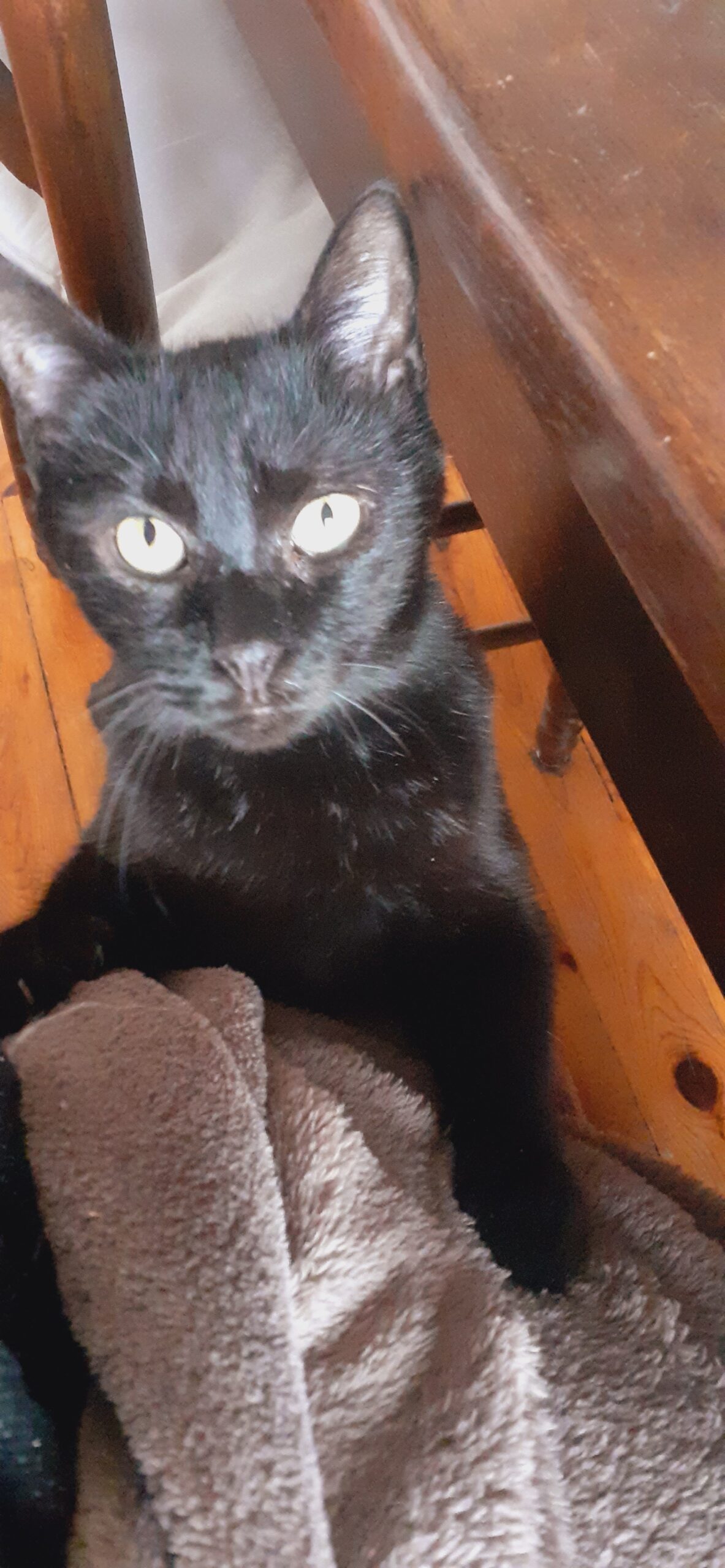 Maintenant qu’elle a confiance, c’est un amour, elle ronronne et vient chercher les câlins.  Par contre  se méfier, quand on lui donne sa pâtée, ayant sûrement endurée la faim, on peut se prendre quelques coup de pâte.  C’est  pour ça  que je conseille d’éviter les enfants en bas âge.