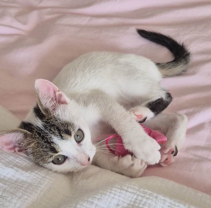 Moka est une joueuse, elle prendra du plaisir à utiliser les jouets avec vous. Elle est une excellente chasseuse, en intérieur, mouche et araignée n’ont pas à traverser le salon !