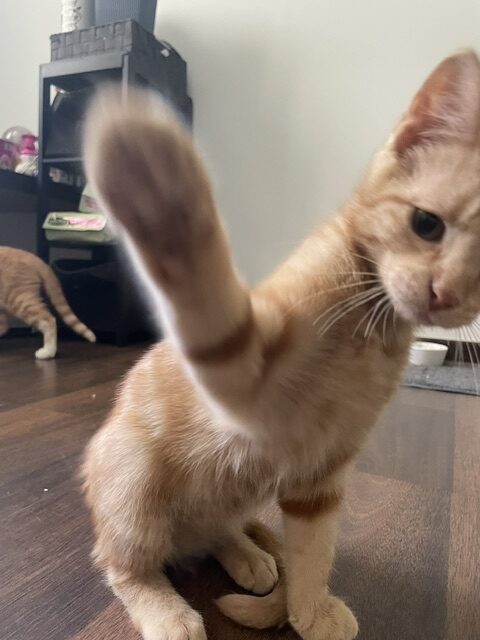 Il a aussi changé de famille d’accueil pour vivre avec d’autres chats, ce qu’il adore ça !