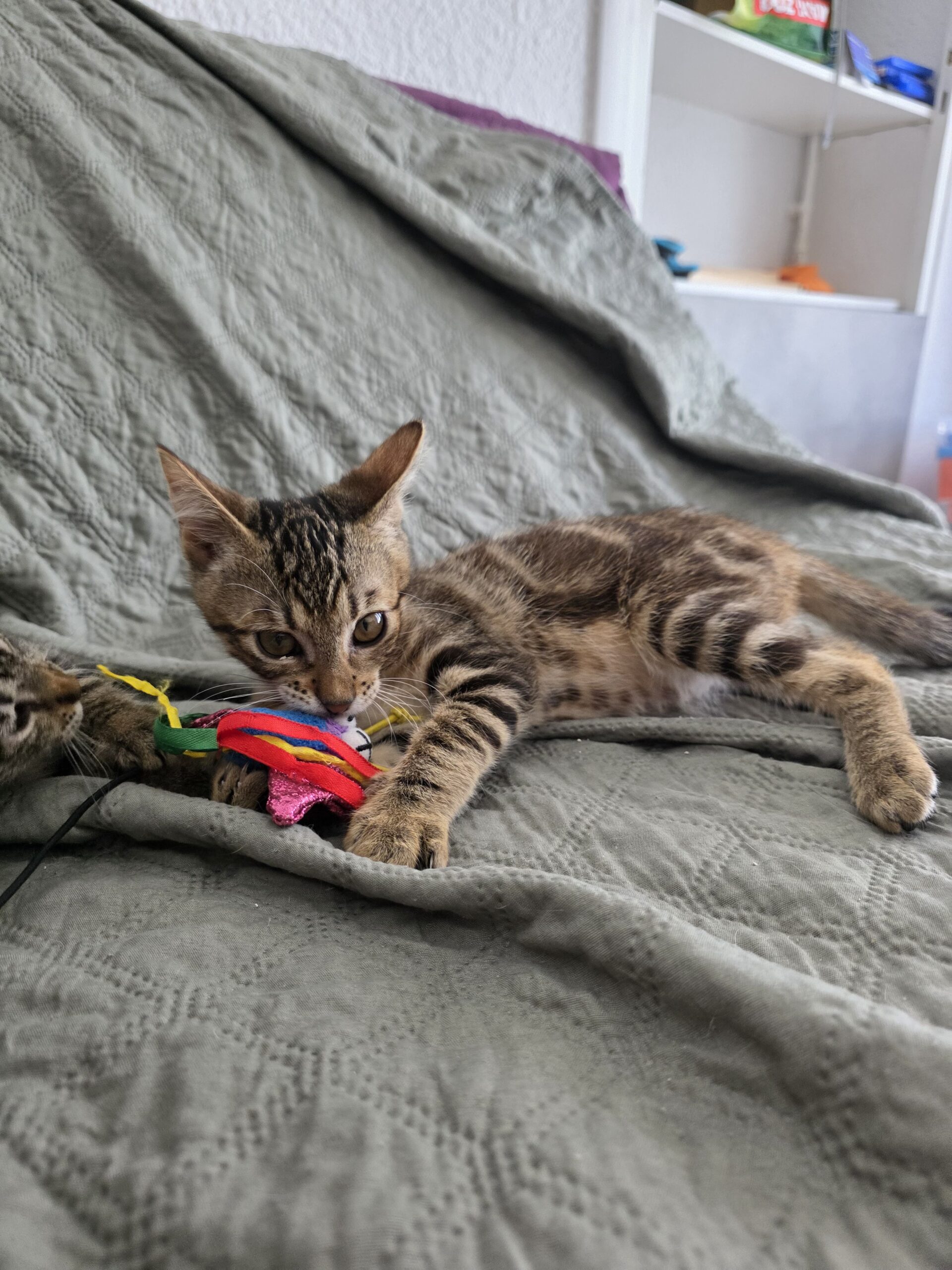 Gipsy est une jeune femelle , écaille de tortue qui est née  approximativement  autour du 1er octobre 2024. Elle a été trappée avec ses 3 chatons .