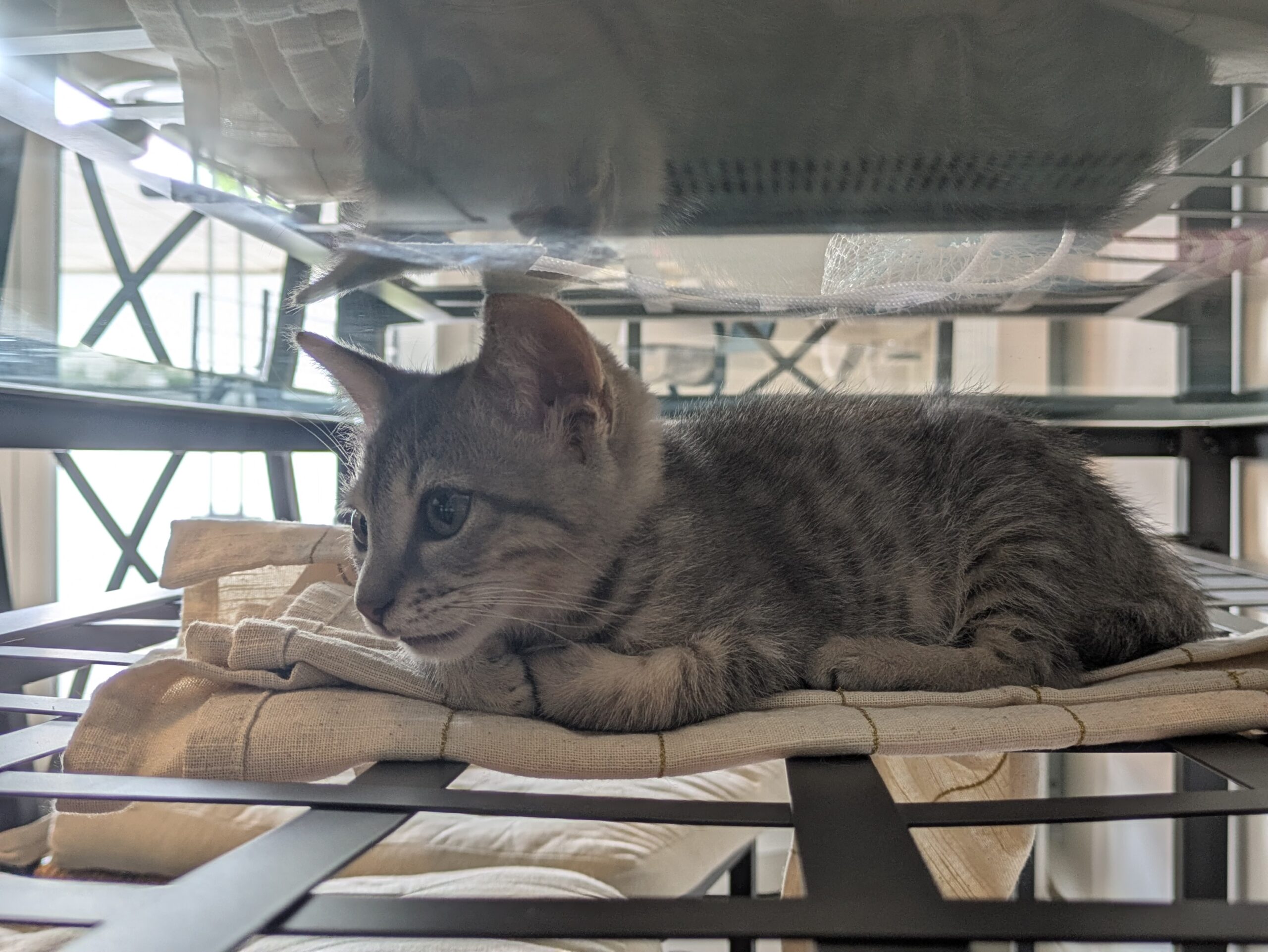 Son entente avec les autres chats semble se compliquer au fur et à mesure qu’elle prend de l’assurance,