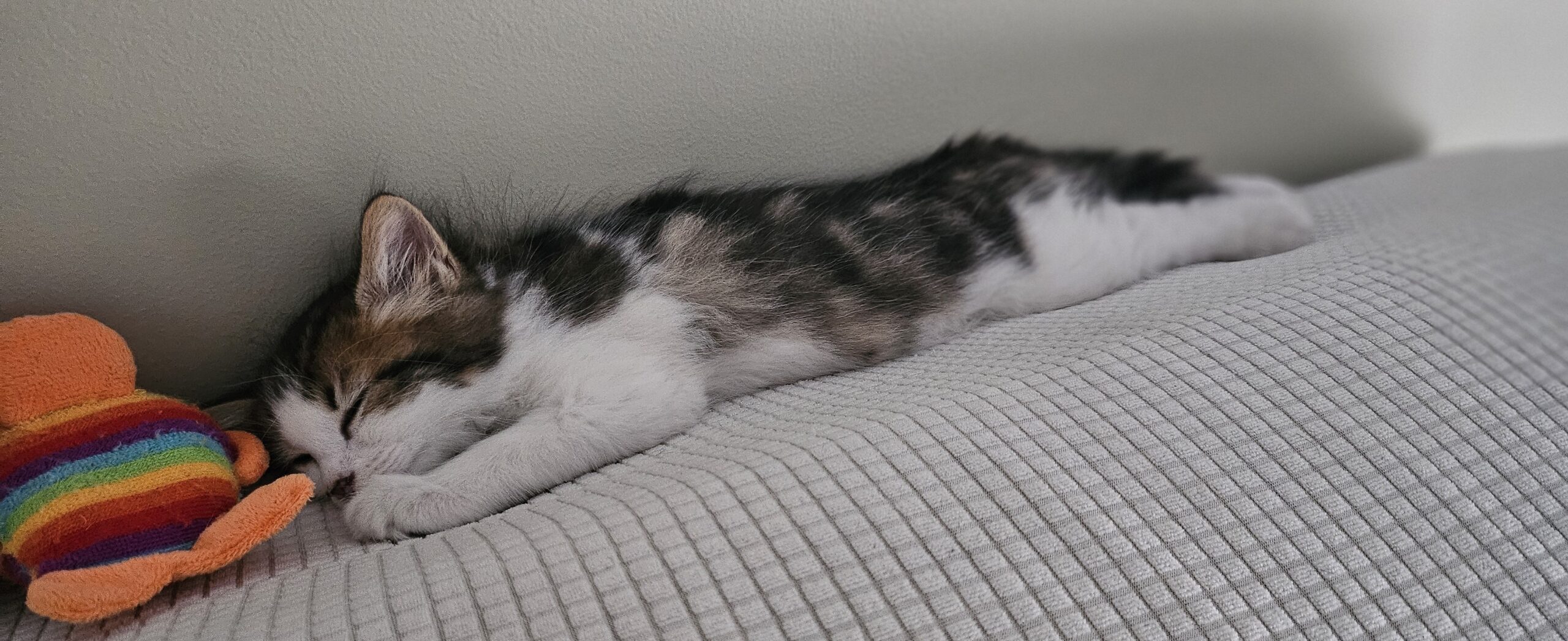 Quand elle a été adoptée, j’en ai pleuré. Ce petit trésor rescapé allait me manquer. Ses ronrons super forts et ses courses poursuites avec mes chats... son pelage tout doux et fascinant... sa petite tête expressive... Mais tel est le job de famille d’accueil...
