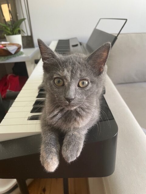 Après une petite semaine « choc » assez stressante pour elle et sa sœur pour s’habituer à la vie en intérieur et au contact répété avec les humains, Nuage a pris confiance en l’homme (et en la vie en appartement !).