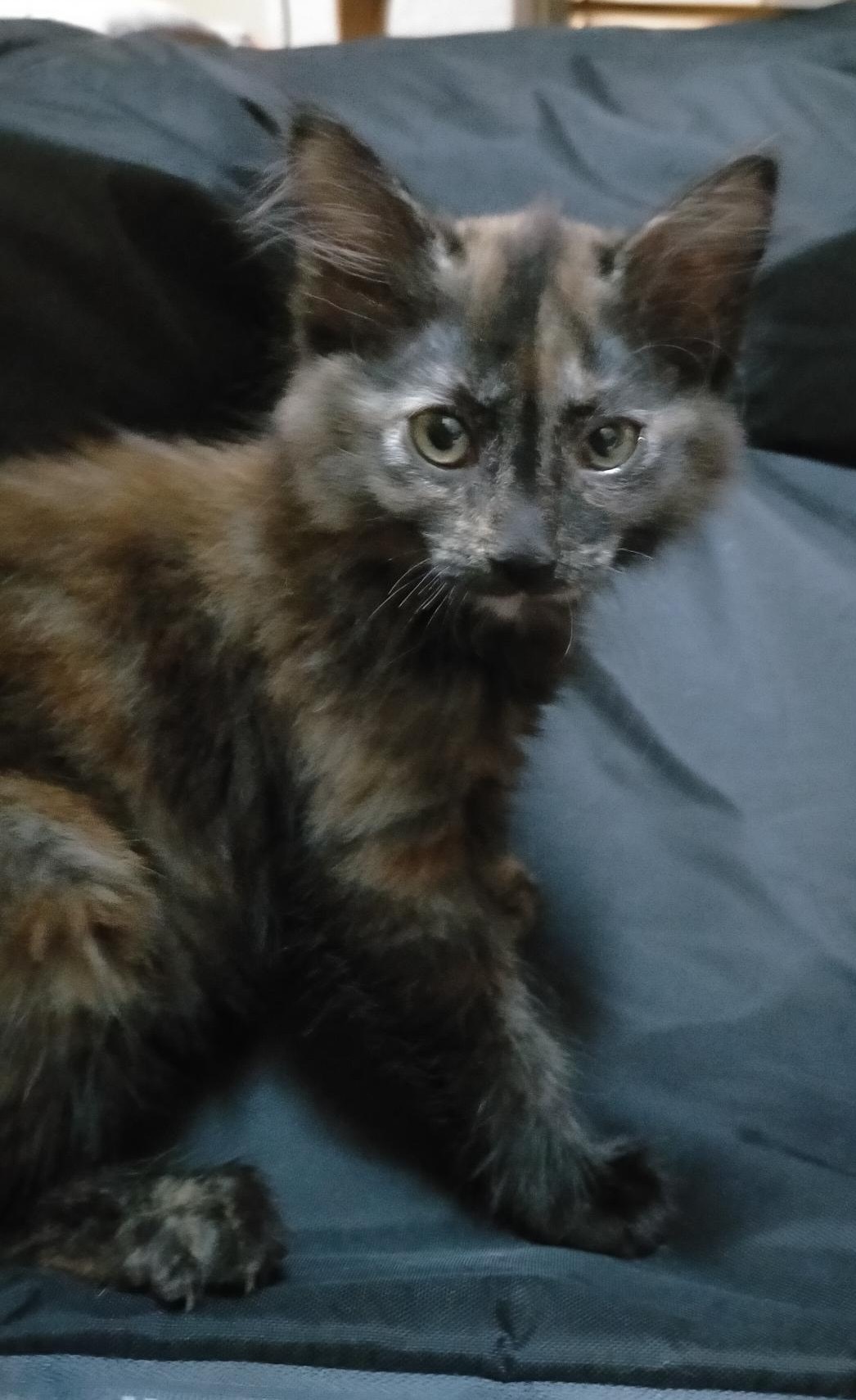 Gipsy est une jeune femelle , écaille de tortue qui est née  approximativement  autour du 1er octobre 2024. Elle a été trappée avec ses 3 chatons .
