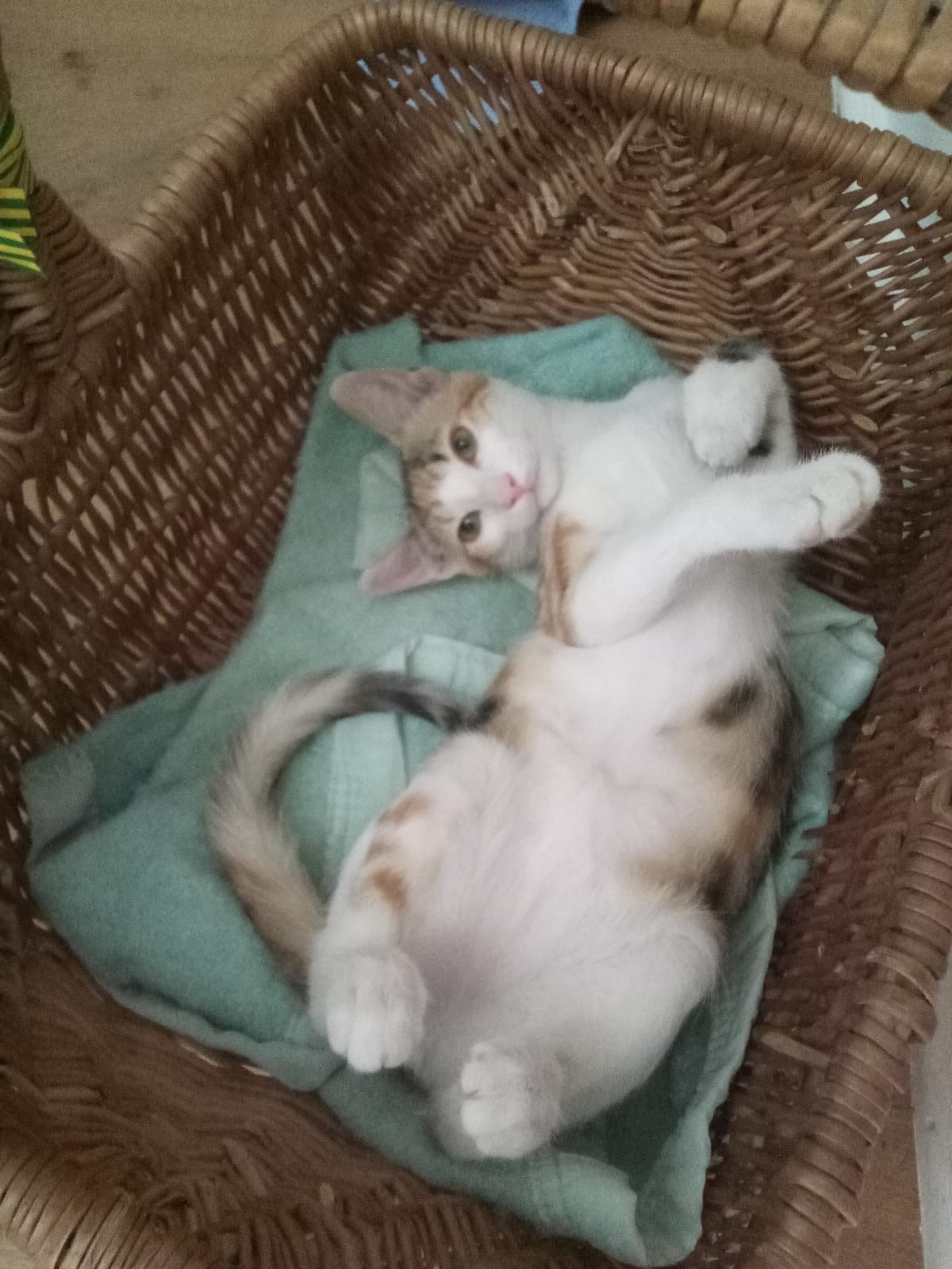 Très jolie frimousse, très peureuse (au début), très câline après, Sheba n’aime pas rester dans un coin seule.