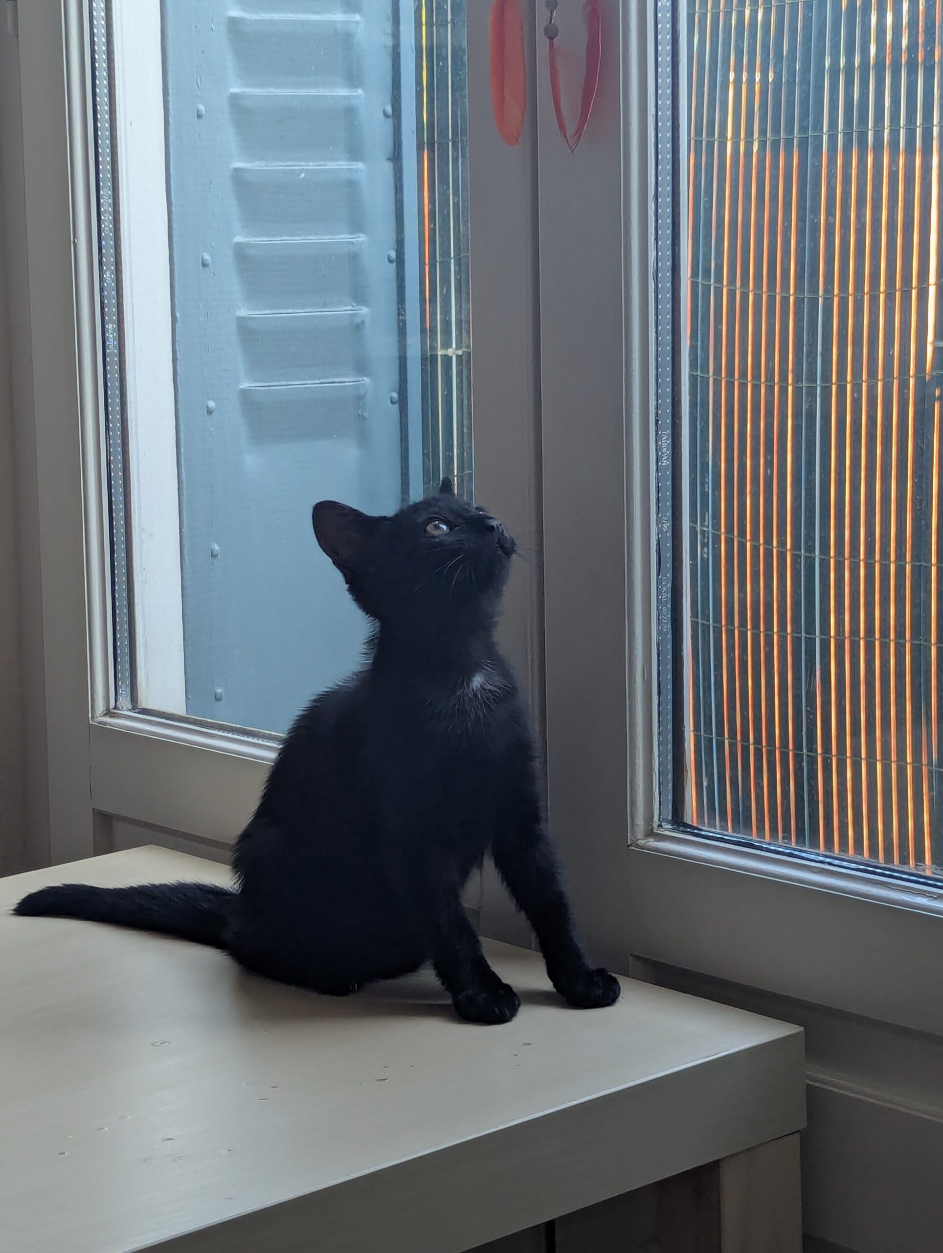 Après une petite semaine « choc » assez stressante pour elle et sa sœur pour s’habituer à la vie en intérieur et au contact répété avec les humains, Nuage a pris confiance en l’homme (et en la vie en appartement !).
