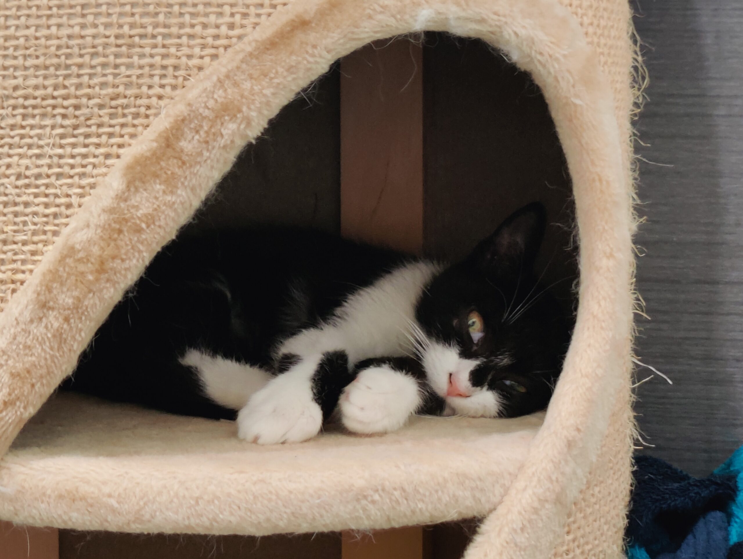 Il a depuis été adopté et mène une vie de câlins et de bonheur avec un copain chat et sa famille d’adoption.