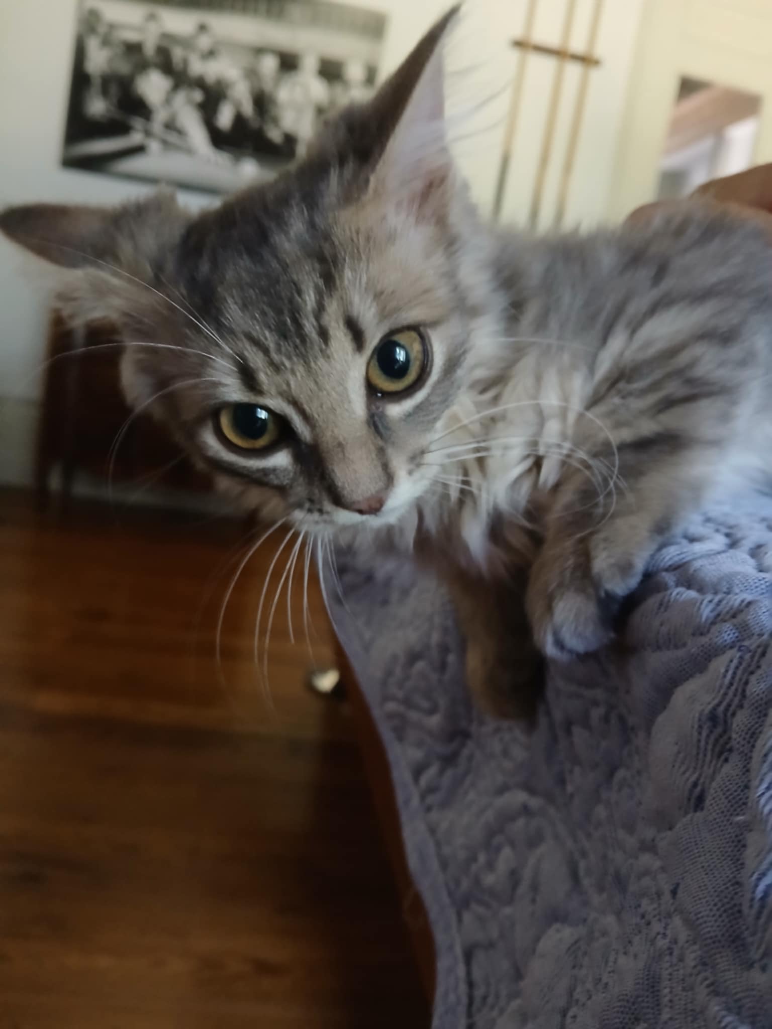 C’est un chat qui a mis un peu de temps à s’habituer à la présence humaine, bien qu’il ait été toujours curieux et ne s’est jamais caché.