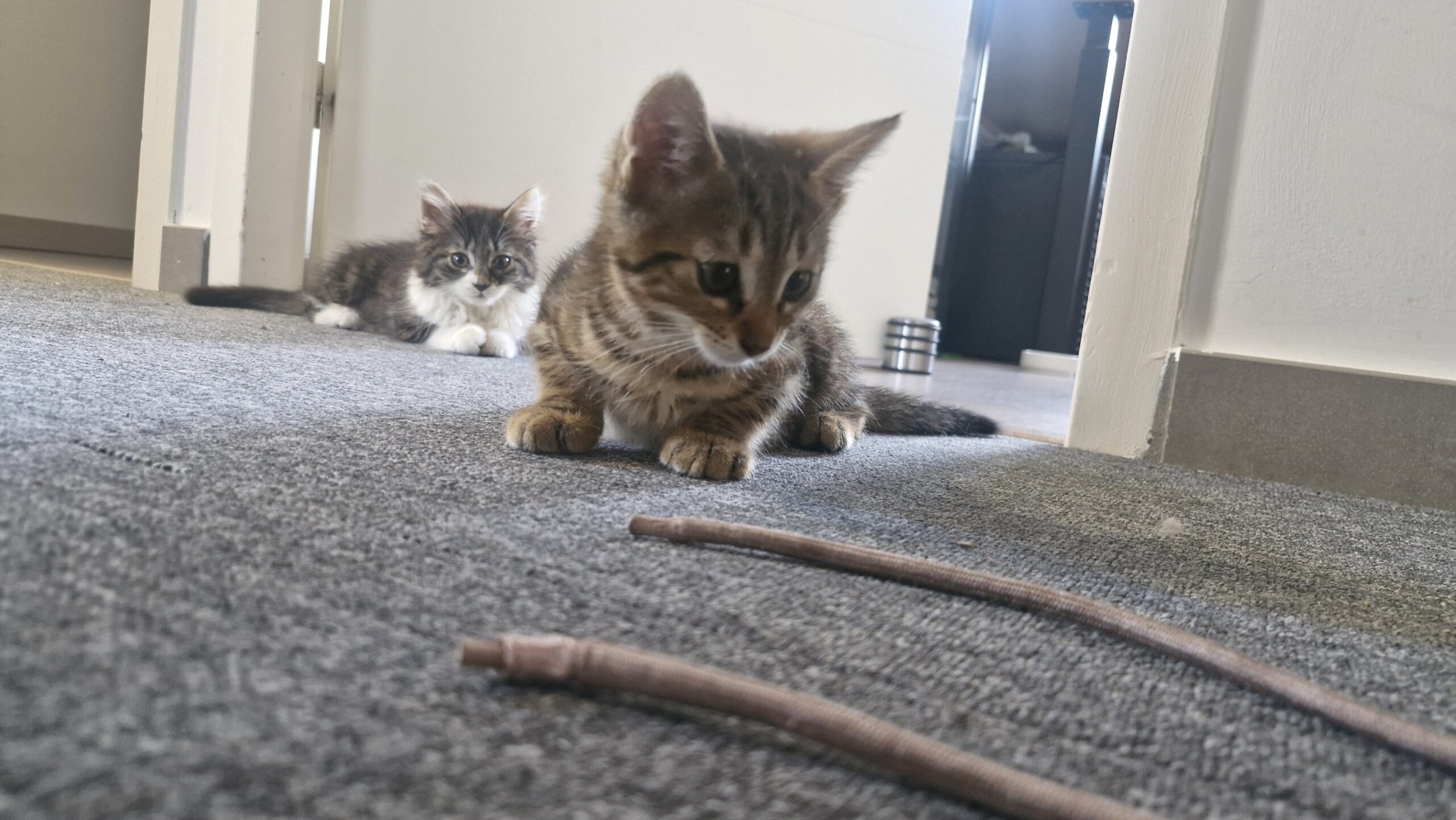 Après une petite semaine « choc » assez stressante pour elle et sa sœur pour s’habituer à la vie en intérieur et au contact répété avec les humains, Nuage a pris confiance en l’homme (et en la vie en appartement !).