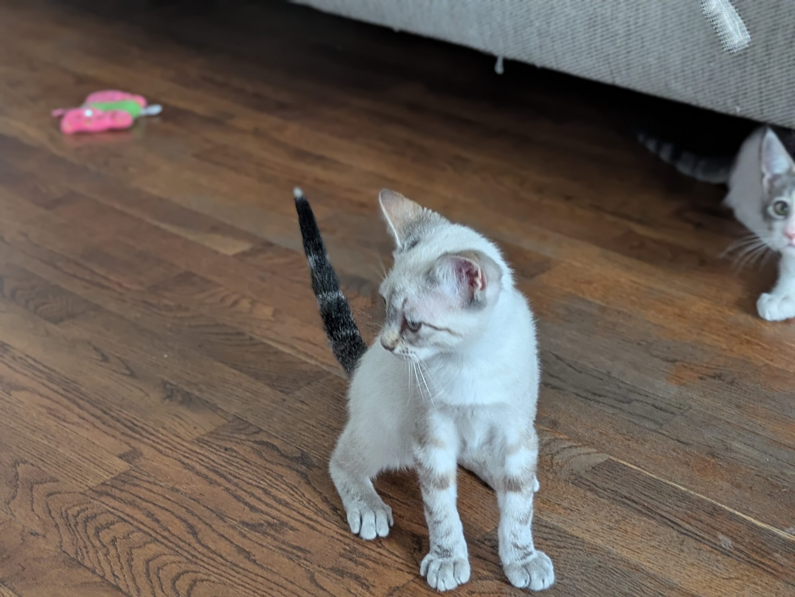 Il a depuis été adopté et mène une vie de câlins et de bonheur avec un copain chat et sa famille d’adoption.