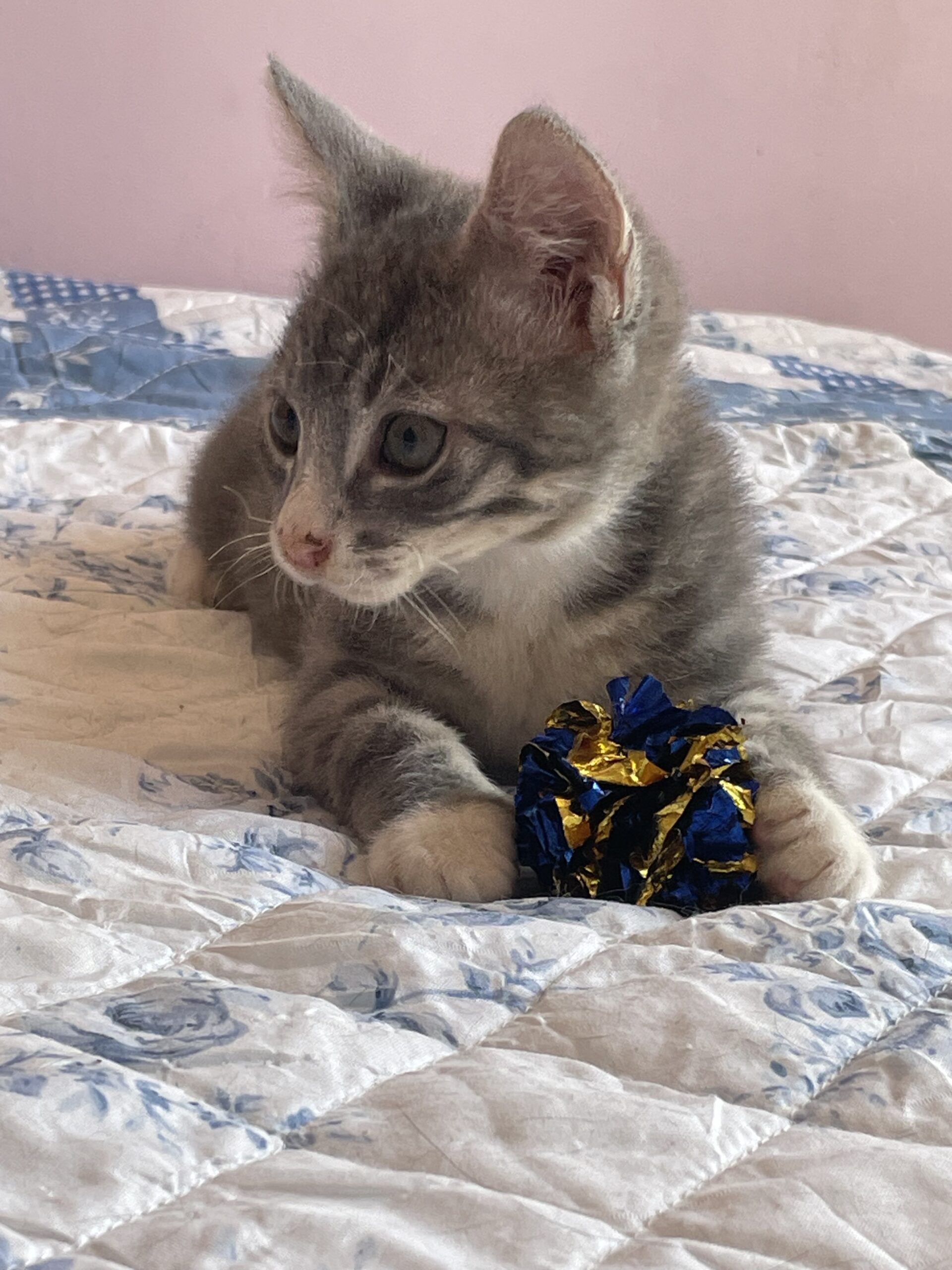 J’ai été trouvé et heureusement mis à l’abri du froid car j’étais tout petit et craintif. Maintenant Je suis un petit chaton qui découvre tout, aime tout voir, joue énormément et avec tous. Du jouet chat à un bouchon, au chouchou cheveux. Tous et un jouer pour moi et j’adore jouer.