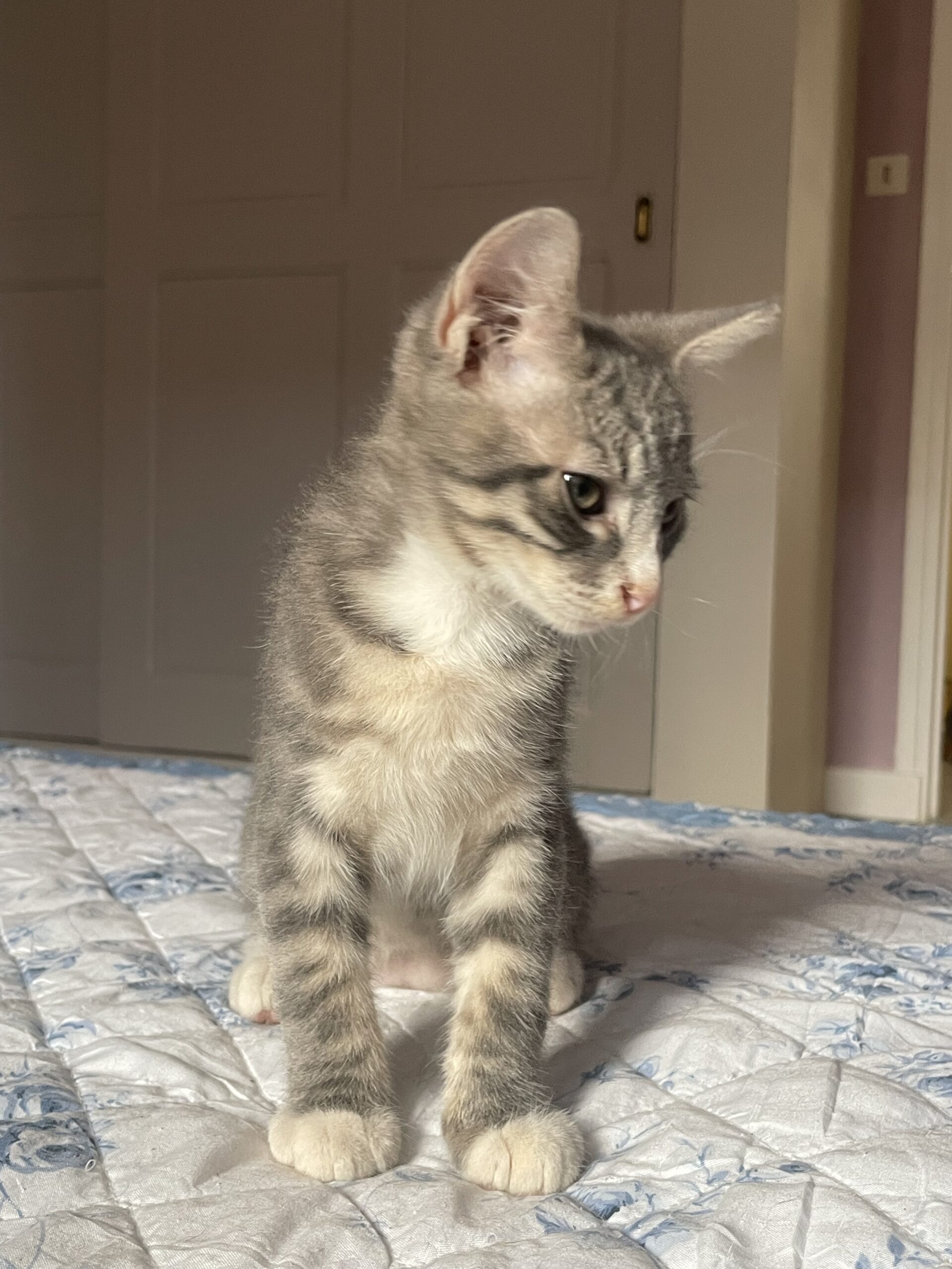 Elle a été adoptée une première fois dans une famille d’accueil de Cosa Animalia, puis rendue à l’association pour des problèmes de propreté : si vous laissez traîner un plaid sur le canapé, ou un pull sur votre lit, elle fera probablement pipi dessus. Mais sinon, elle fait toujours ses besoins dans la litière.