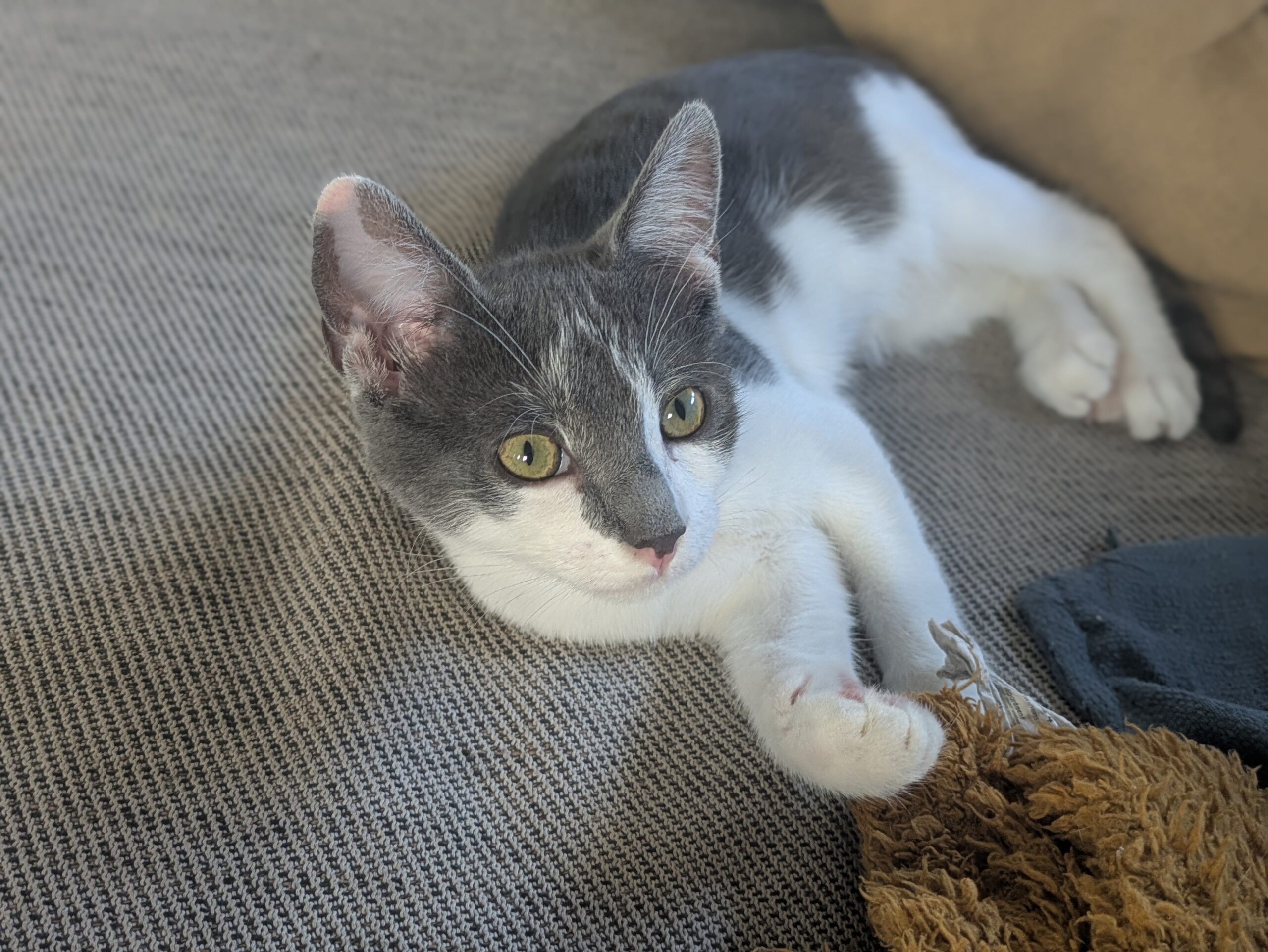 Il a depuis été adopté et mène une vie de câlins et de bonheur avec un copain chat et sa famille d’adoption.