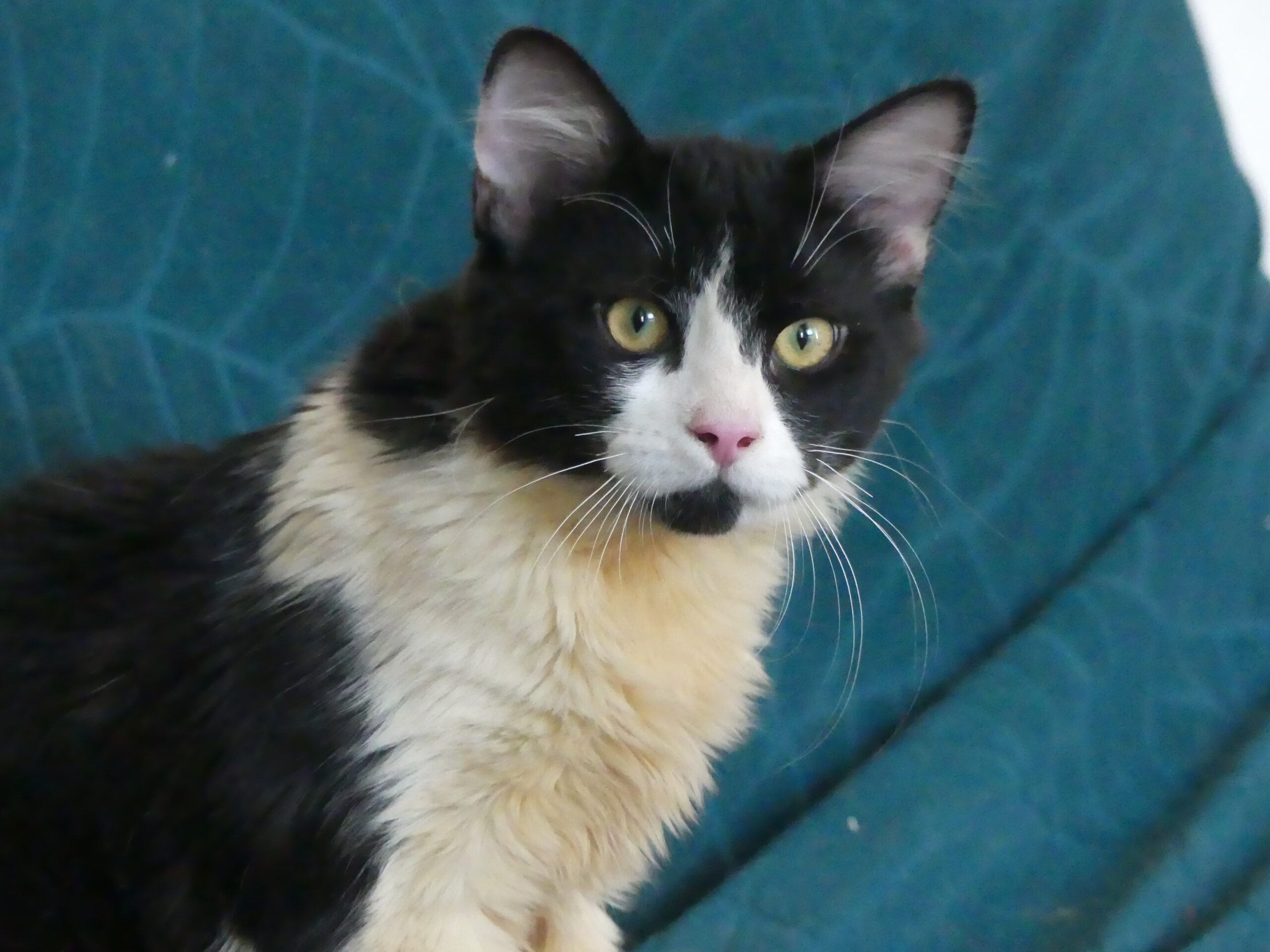 Millie est une belle minette au pelage noir et blanc, arrivée avec sa sœur Willow.