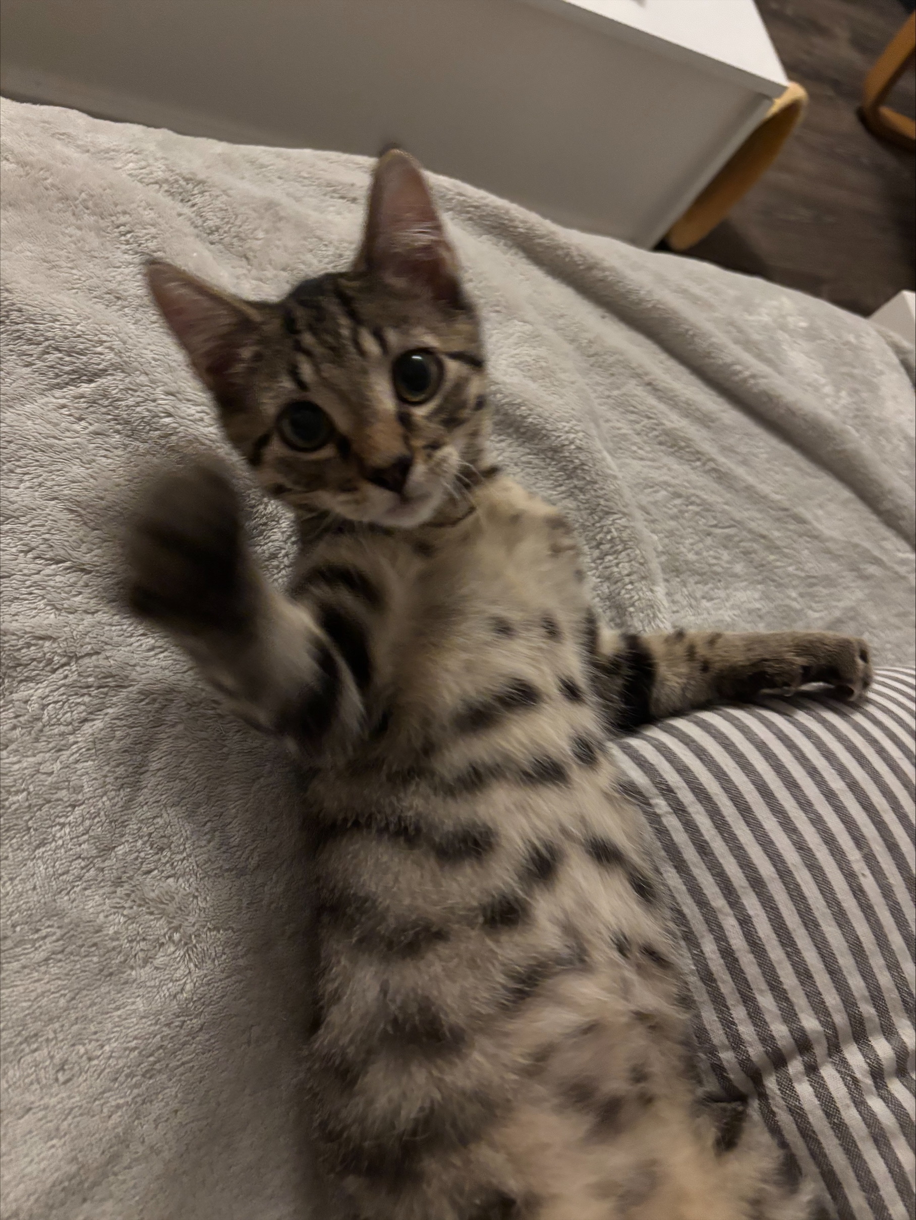 Arrivé craintif, ce petit loulou a fait des progr Arrivé craintif, ce petit loulou a fait des progrès immenses en seulement 48h (cela peut prendre beaucoup plus de temps 😅). Il apprend doucement que la main de l'humain est faite pour les câlins, pas pour faire mal.