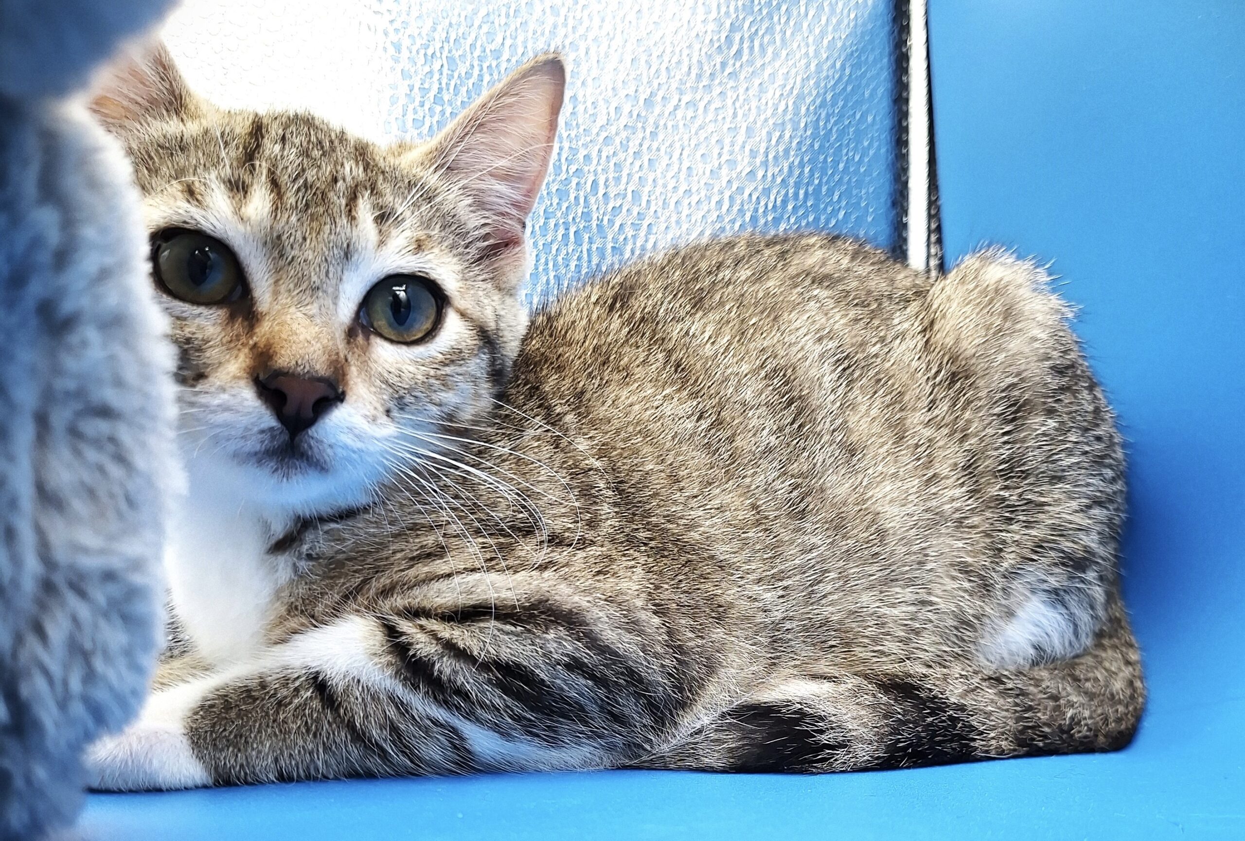 Il a depuis été adopté et mène une vie de câlins et de bonheur avec un copain chat et sa famille d’adoption.