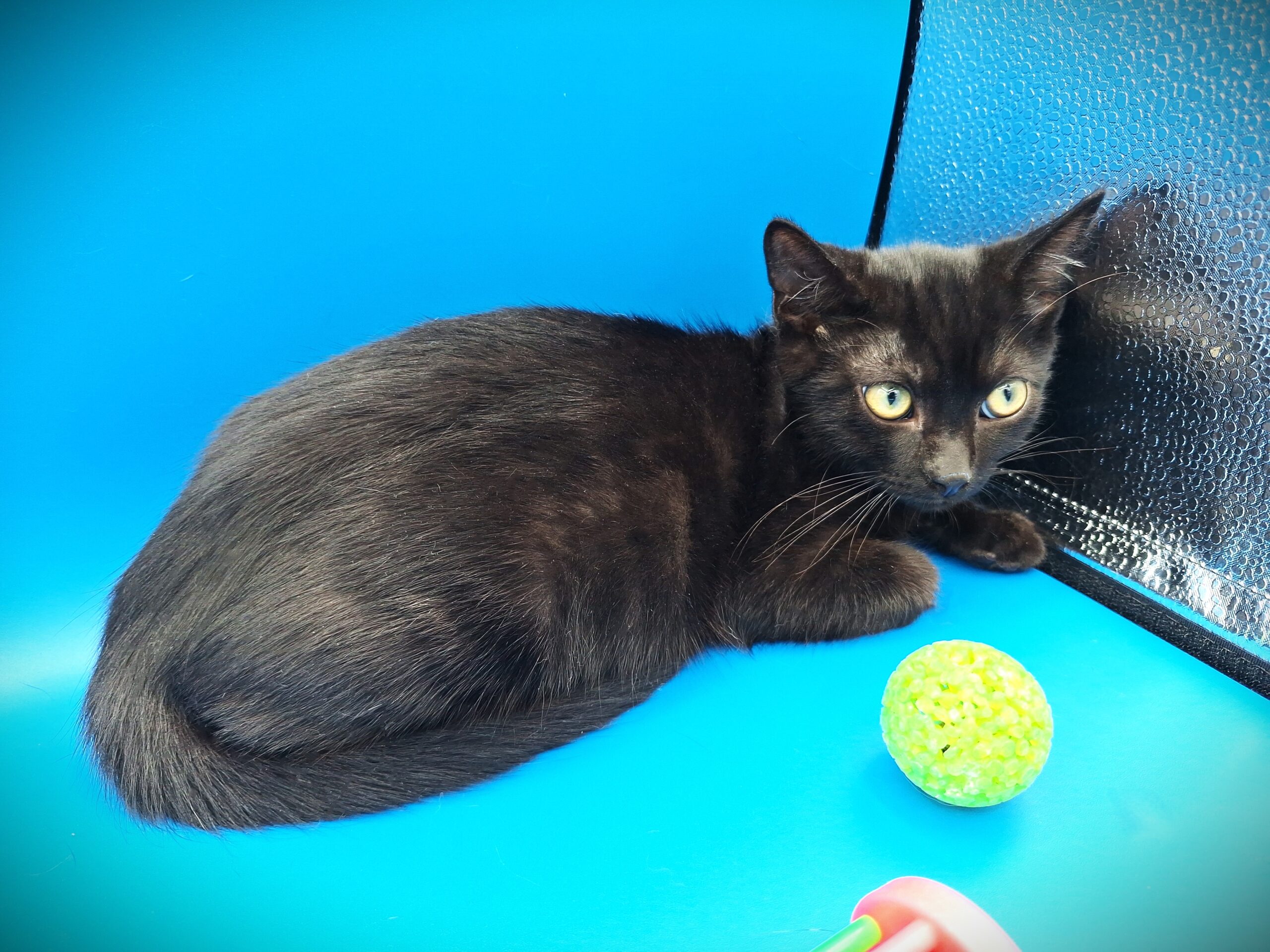 J’ai été trouvé et heureusement mis à l’abri du froid car j’étais tout petit et craintif. Maintenant Je suis un petit chaton qui découvre tout, aime tout voir, joue énormément et avec tous. Du jouet chat à un bouchon, au chouchou cheveux. Tous et un jouer pour moi et j’adore jouer.
