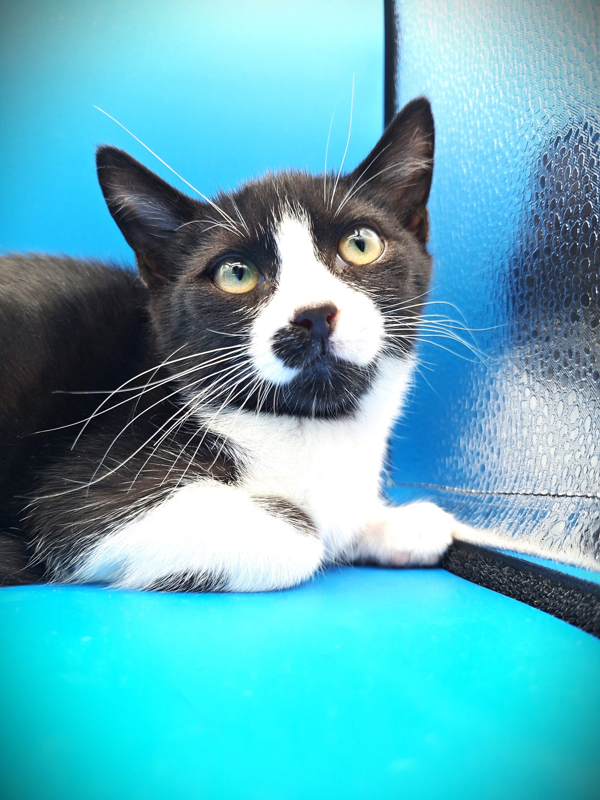 Il a depuis été adopté et mène une vie de câlins et de bonheur avec un copain chat et sa famille d’adoption.