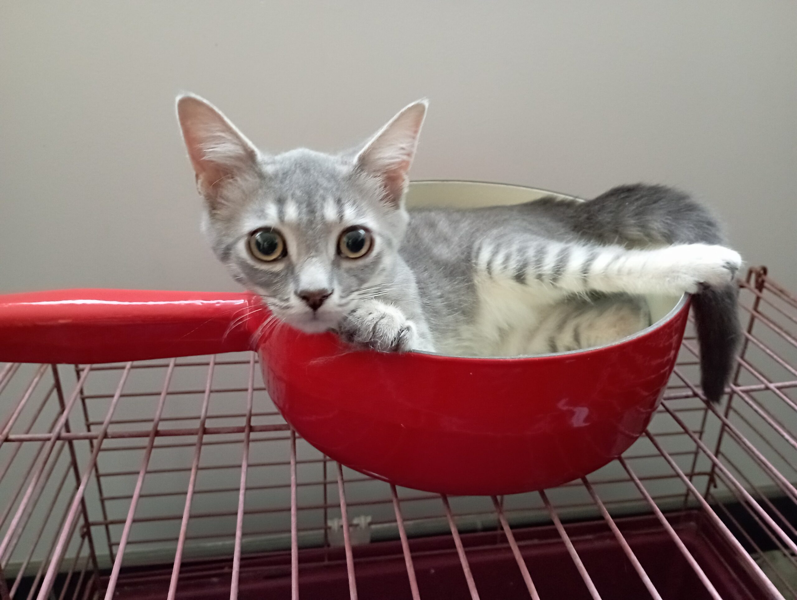 Il a depuis été adopté et mène une vie de câlins et de bonheur avec un copain chat et sa famille d’adoption.