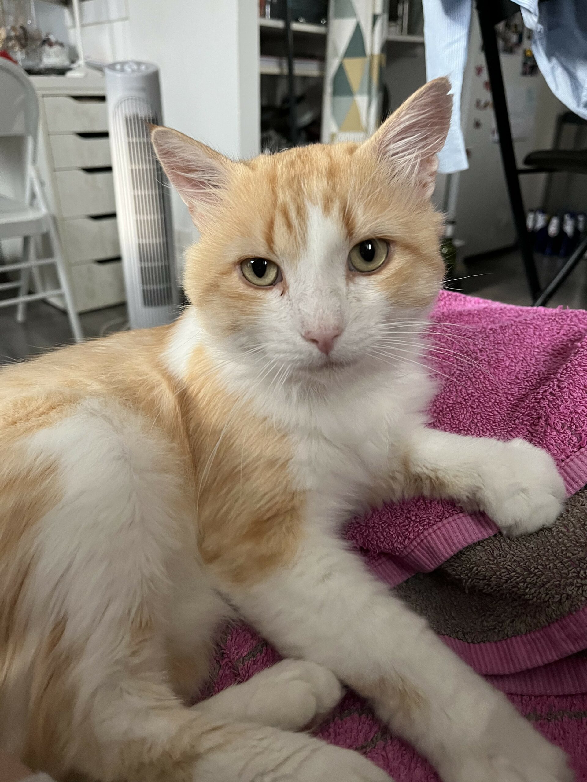 Il a depuis été adopté et mène une vie de câlins et de bonheur avec un copain chat et sa famille d’adoption.