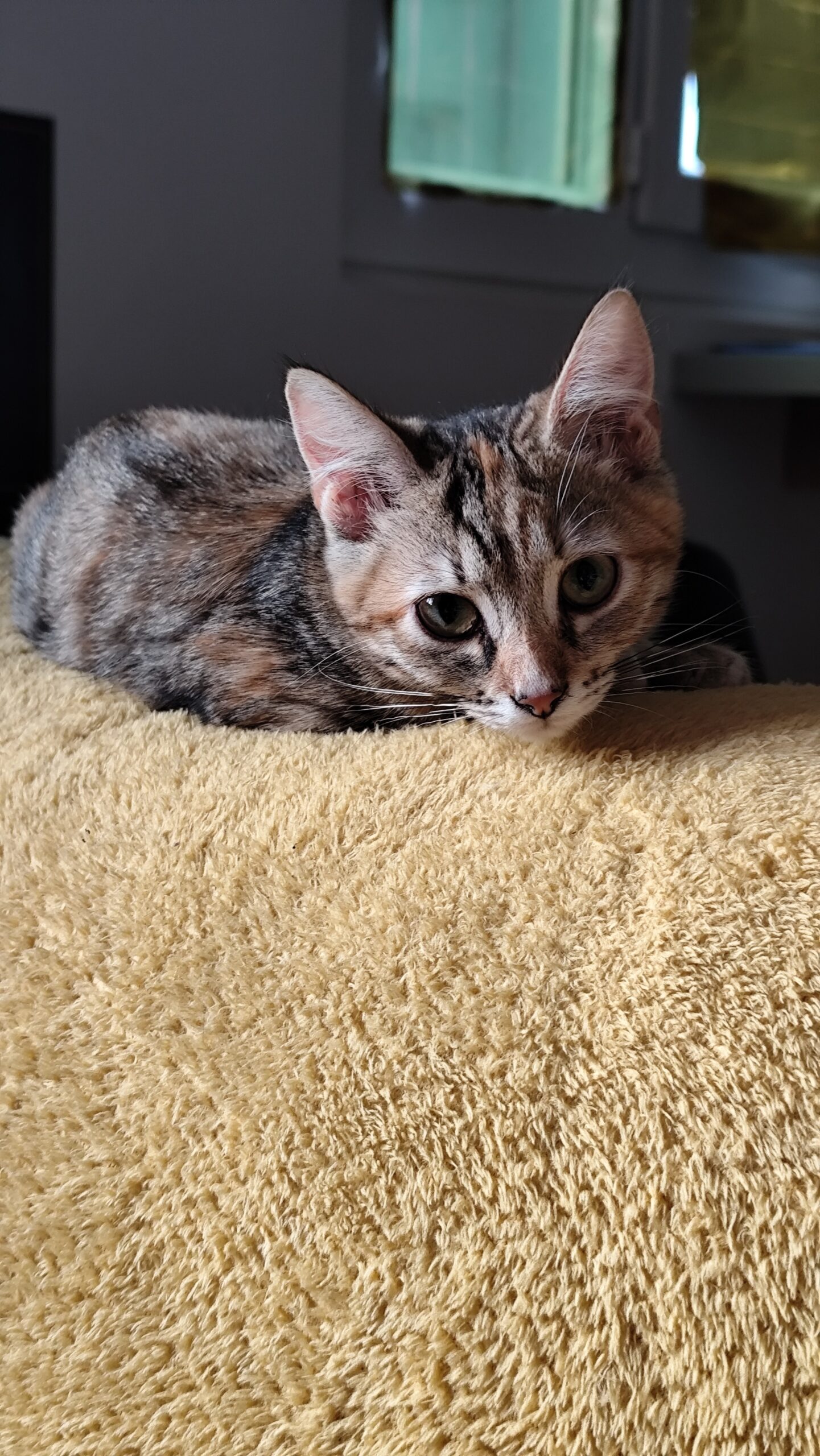 Noumy est une chatte d’un an au pelage écaille Noumy est une chatte d’un an au pelage écaille de tortue.