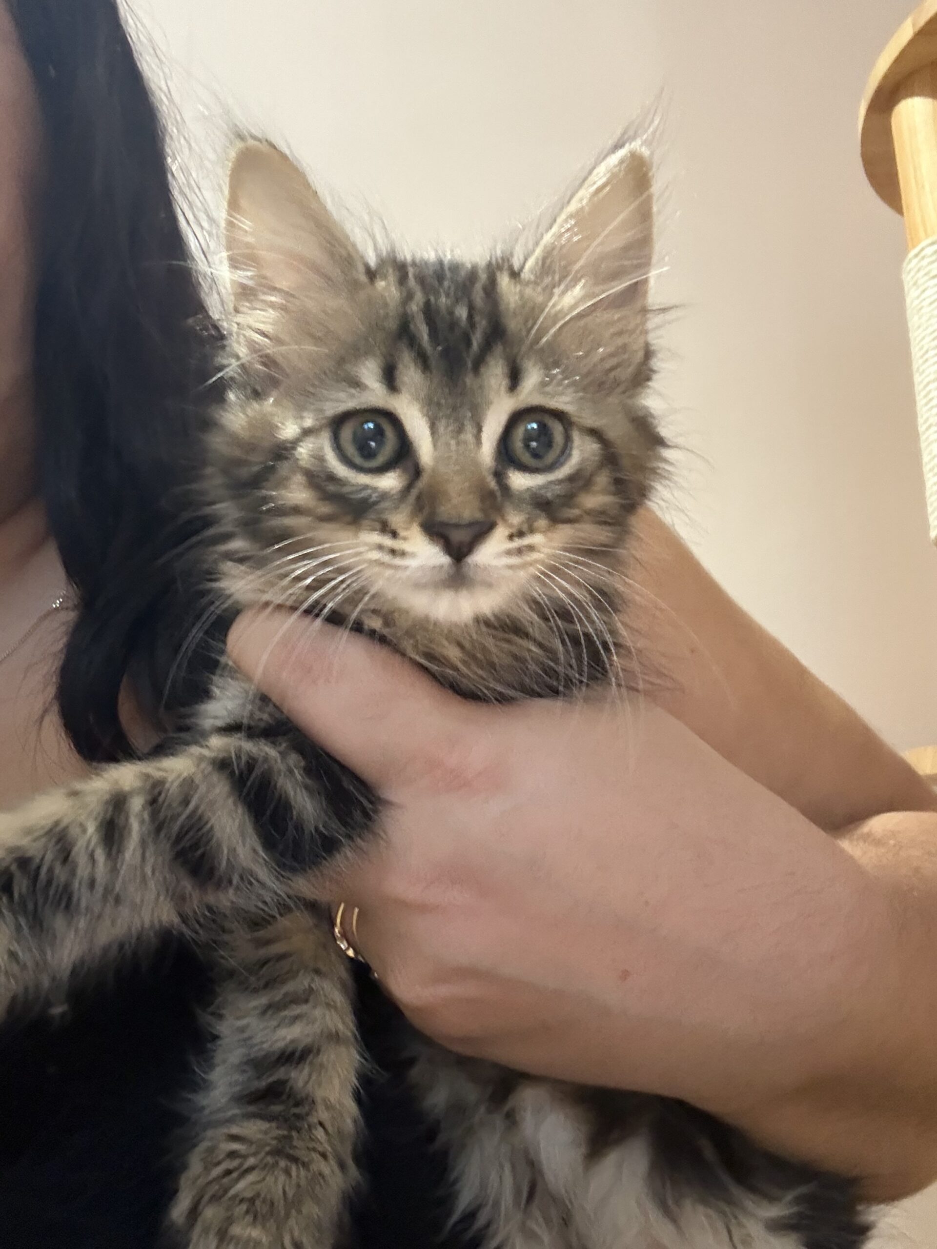 Elle est assez calme, contrairement à pas mal de chats ce n’est pas une « grimpeuse » (en tout cas pour l’instant !).