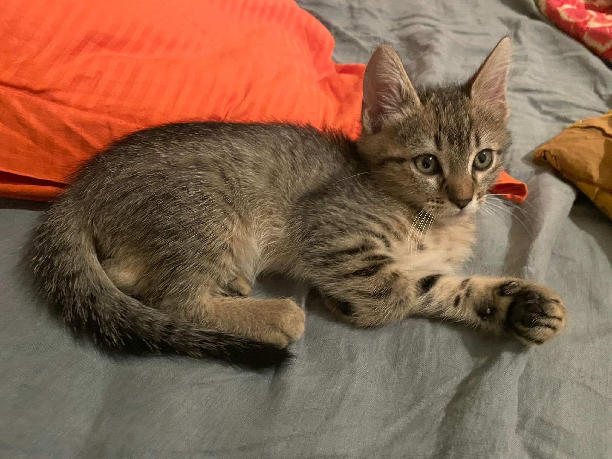 J’ai été trouvé et heureusement mis à l’abri du froid car j’étais tout petit et craintif. Maintenant Je suis un petit chaton qui découvre tout, aime tout voir, joue énormément et avec tous. Du jouet chat à un bouchon, au chouchou cheveux. Tous et un jouer pour moi et j’adore jouer.