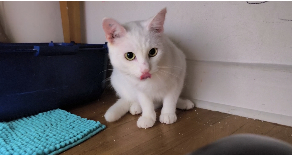 Il a depuis été adopté et mène une vie de câlins et de bonheur avec un copain chat et sa famille d’adoption.
