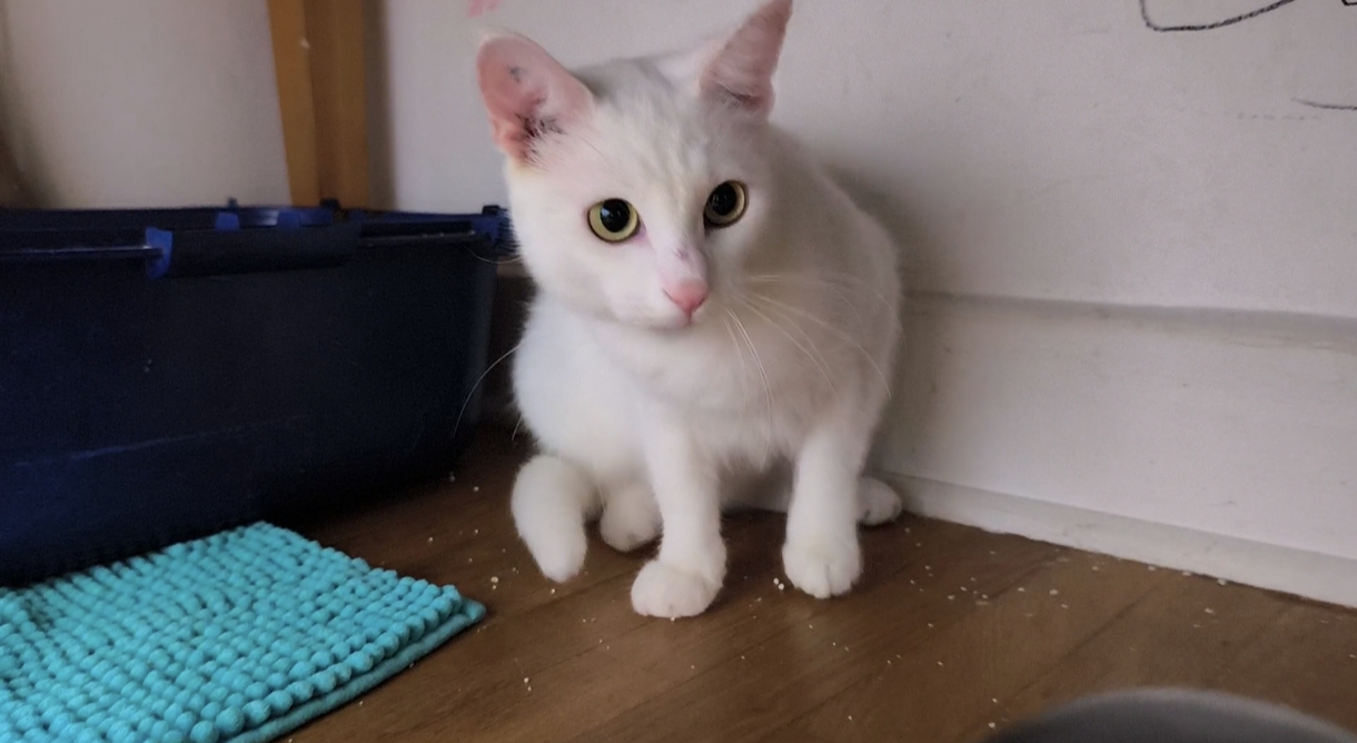 Il a depuis été adopté et mène une vie de câlins et de bonheur avec un copain chat et sa famille d’adoption.