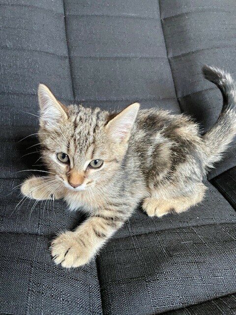 J’ai été trouvé et heureusement mis à l’abri du froid car j’étais tout petit et craintif. Maintenant Je suis un petit chaton qui découvre tout, aime tout voir, joue énormément et avec tous. Du jouet chat à un bouchon, au chouchou cheveux. Tous et un jouer pour moi et j’adore jouer.