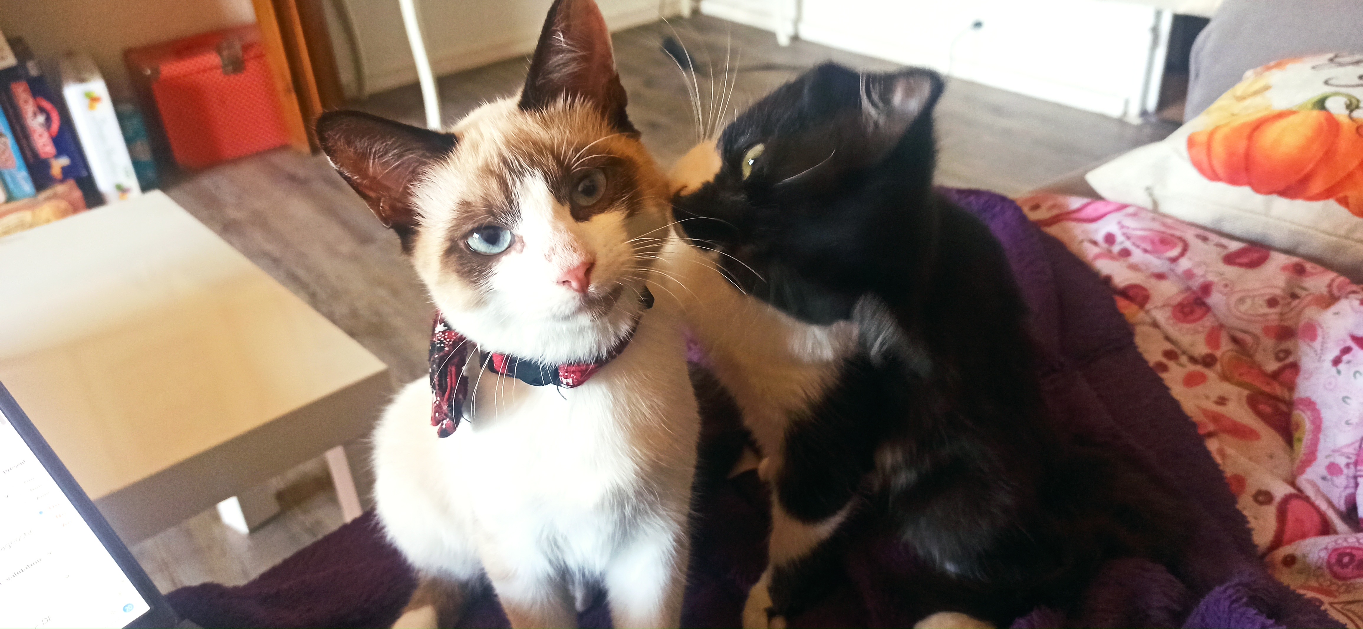 Panghu est vraiment un chat gentil, et très attachant, qui demande surtout des caresses, et un endroit confortable pour faire la sieste.