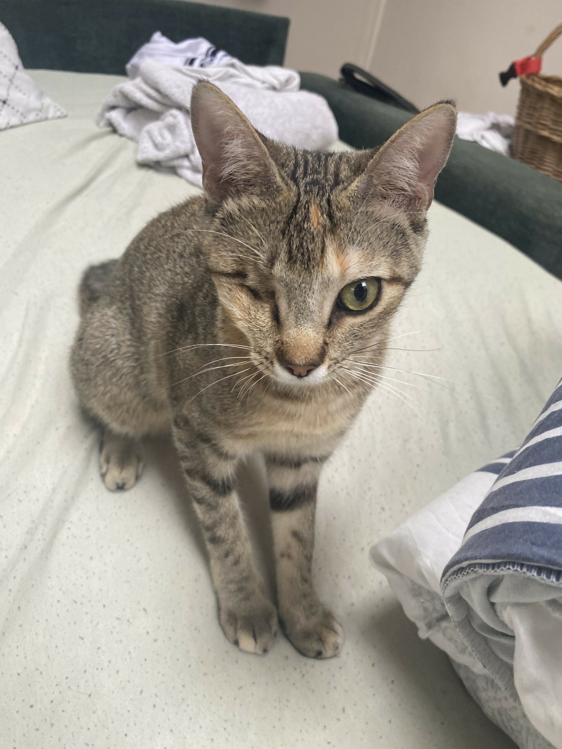 Noumy est une chatte d’un an au pelage écaille Noumy est une chatte d’un an au pelage écaille de tortue.
