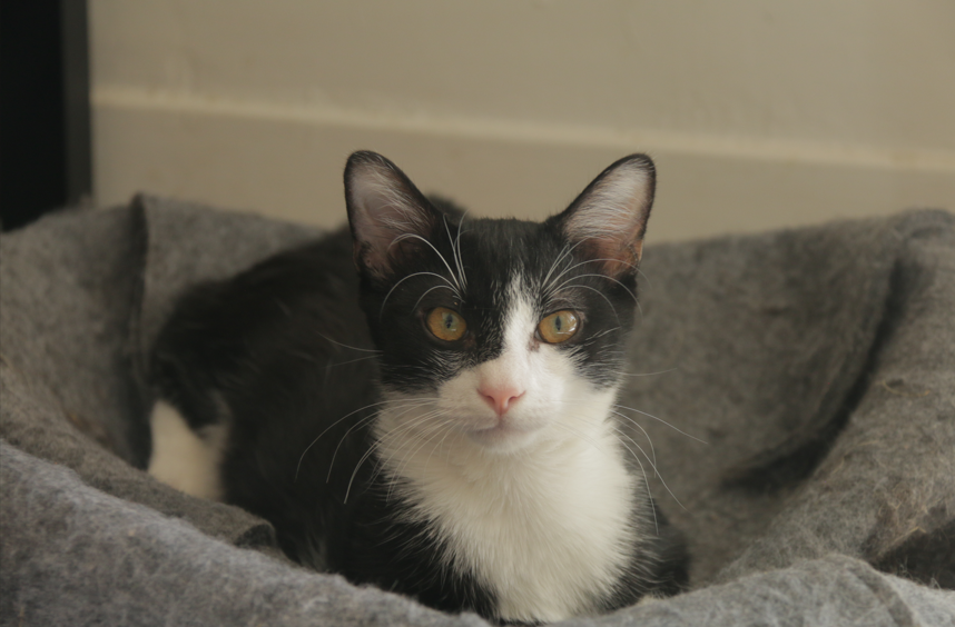 Millie est une belle minette au pelage noir et blanc, arrivée avec sa sœur Willow.