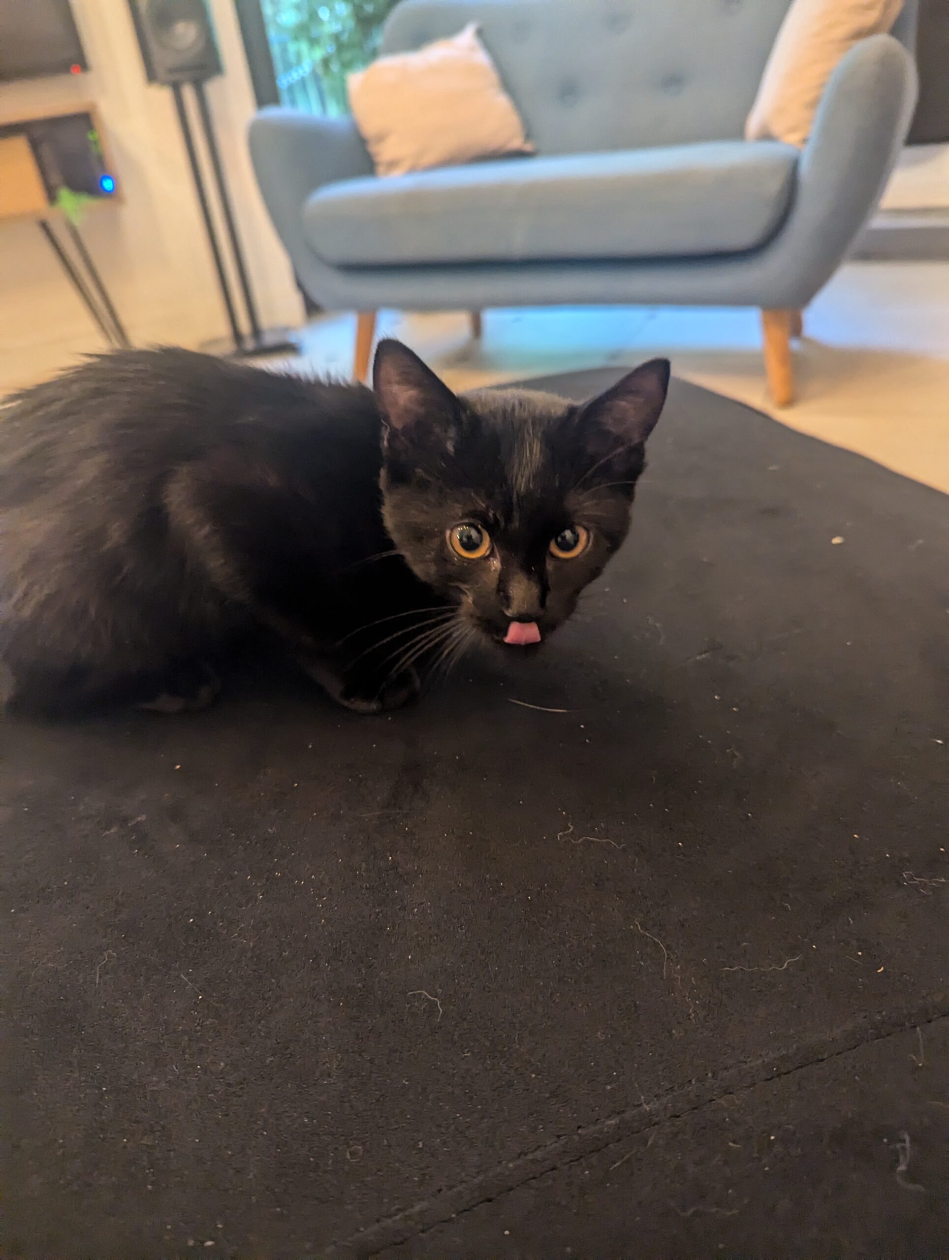 Moka née le 18/07/2024, femelle type européenne toute noire (petite tache blanche au cou)