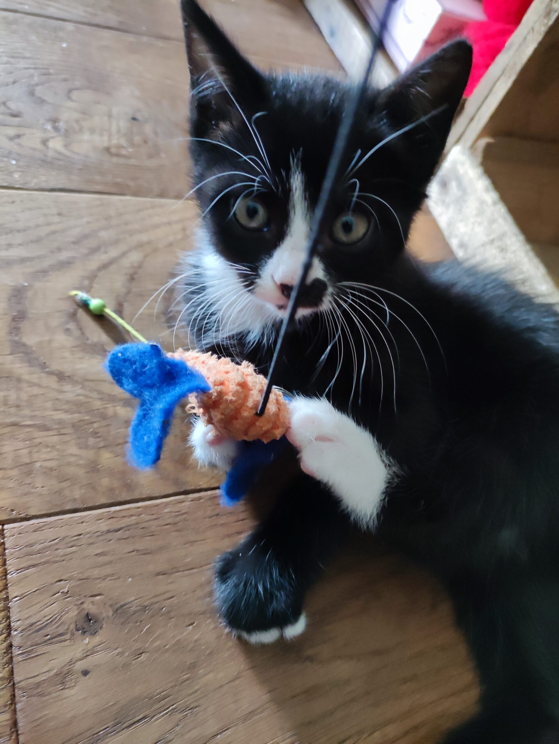 Elle aime beaucoup jouer avec ses copains (une famille avec des chats déjà présents est préférable).