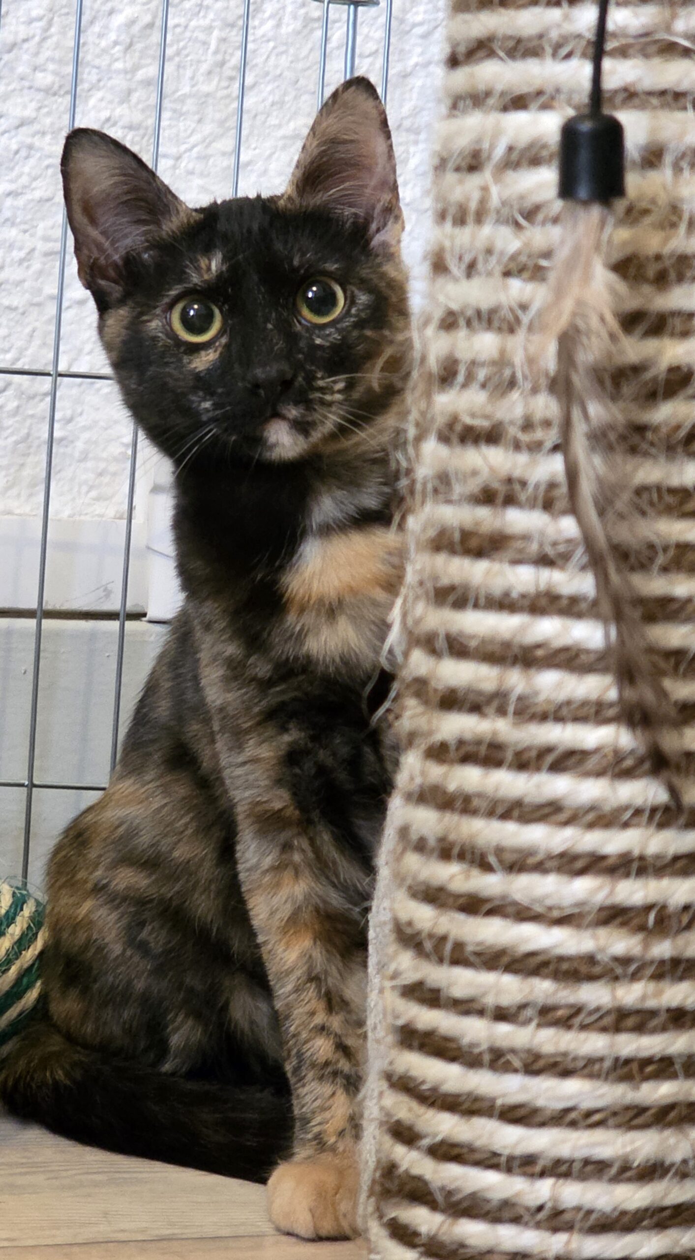 Gipsy est une jeune femelle , écaille de tortue qui est née  approximativement  autour du 1er octobre 2024. Elle a été trappée avec ses 3 chatons .