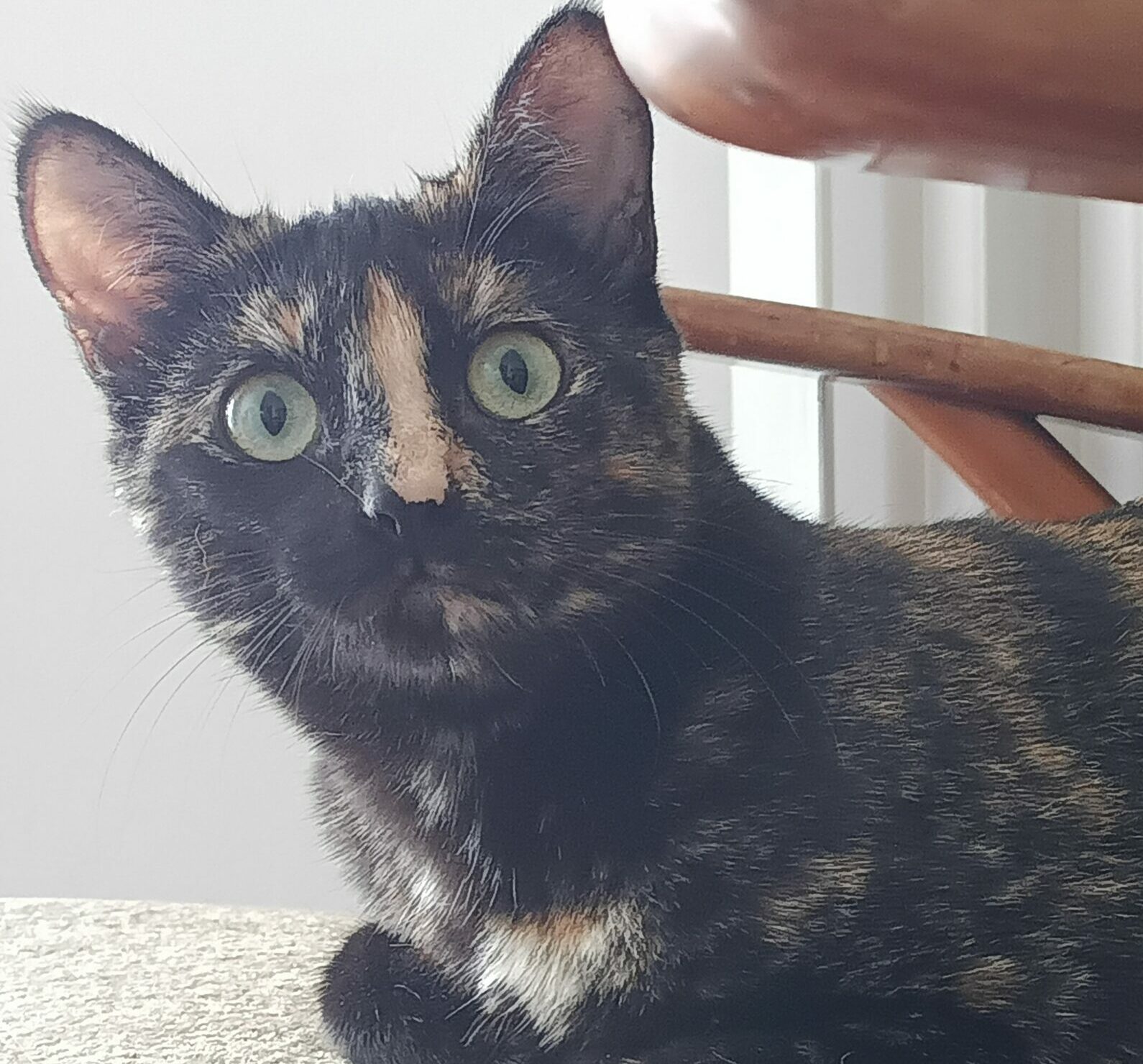 Très jolie frimousse, très peureuse (au début), très câline après, Sheba n’aime pas rester dans un coin seule.