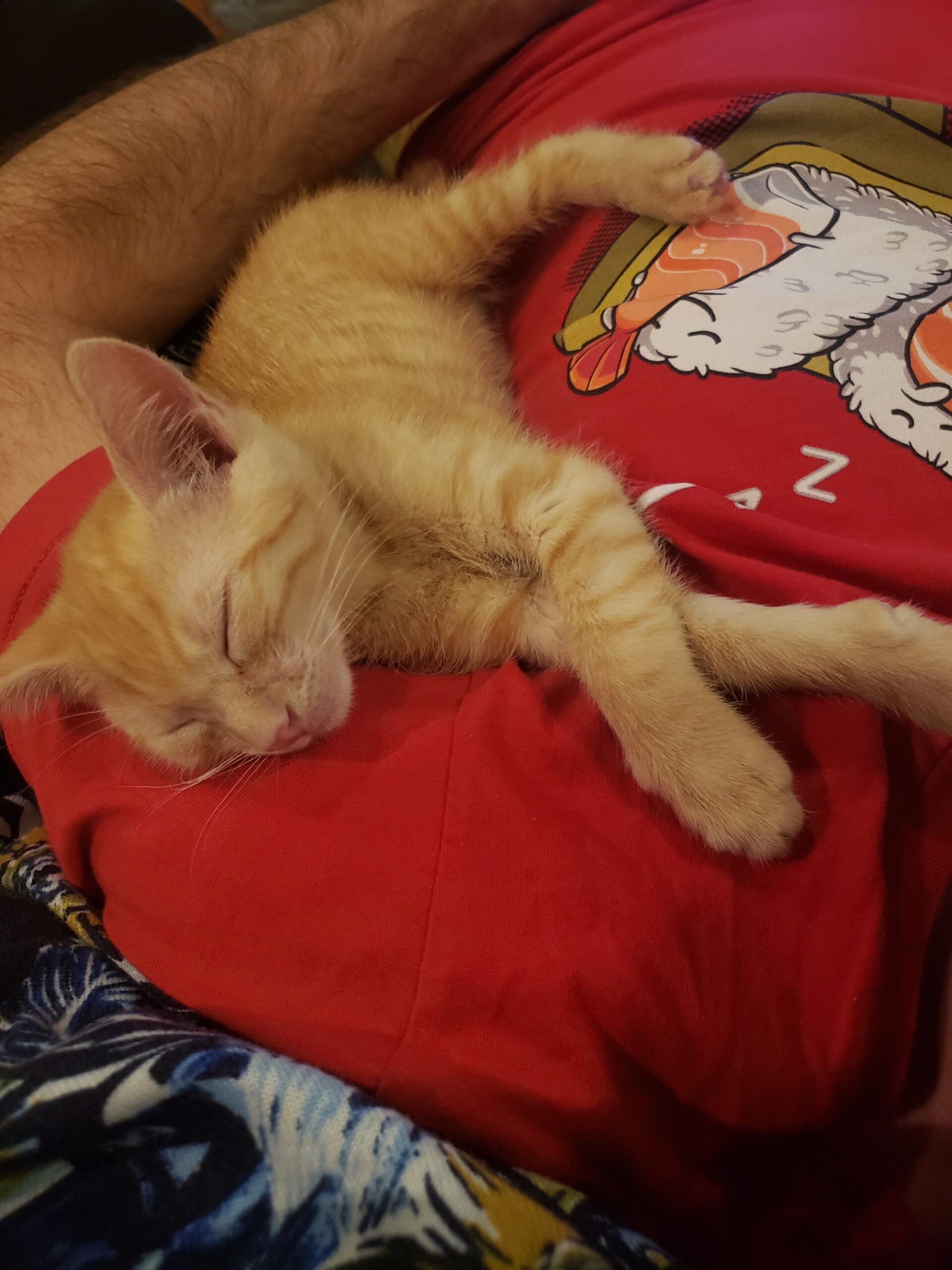 Il a depuis été adopté et mène une vie de câlins et de bonheur avec un copain chat et sa famille d’adoption.