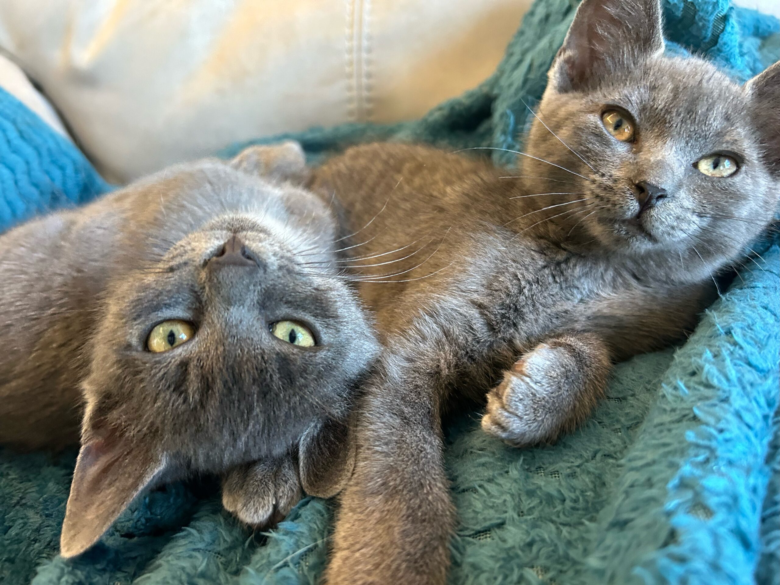 Après une petite semaine « choc » assez stressante pour elle et sa sœur pour s’habituer à la vie en intérieur et au contact répété avec les humains, Nuage a pris confiance en l’homme (et en la vie en appartement !).