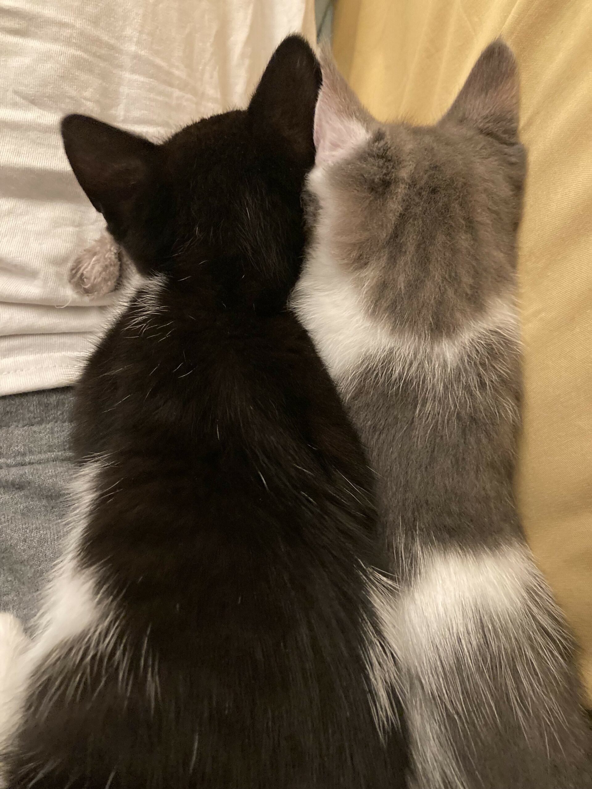 Après une petite semaine « choc » assez stressante pour elle et sa sœur pour s’habituer à la vie en intérieur et au contact répété avec les humains, Nuage a pris confiance en l’homme (et en la vie en appartement !).
