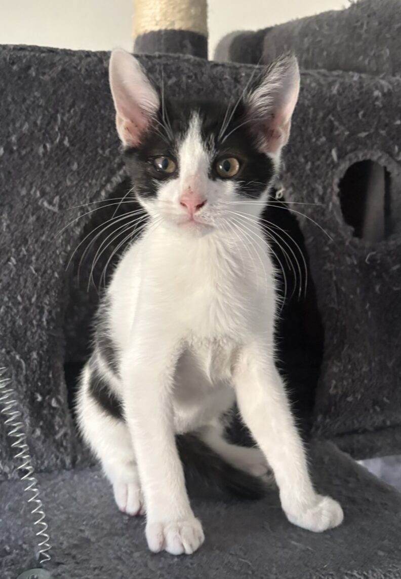 Il a depuis été adopté et mène une vie de câlins et de bonheur avec un copain chat et sa famille d’adoption.