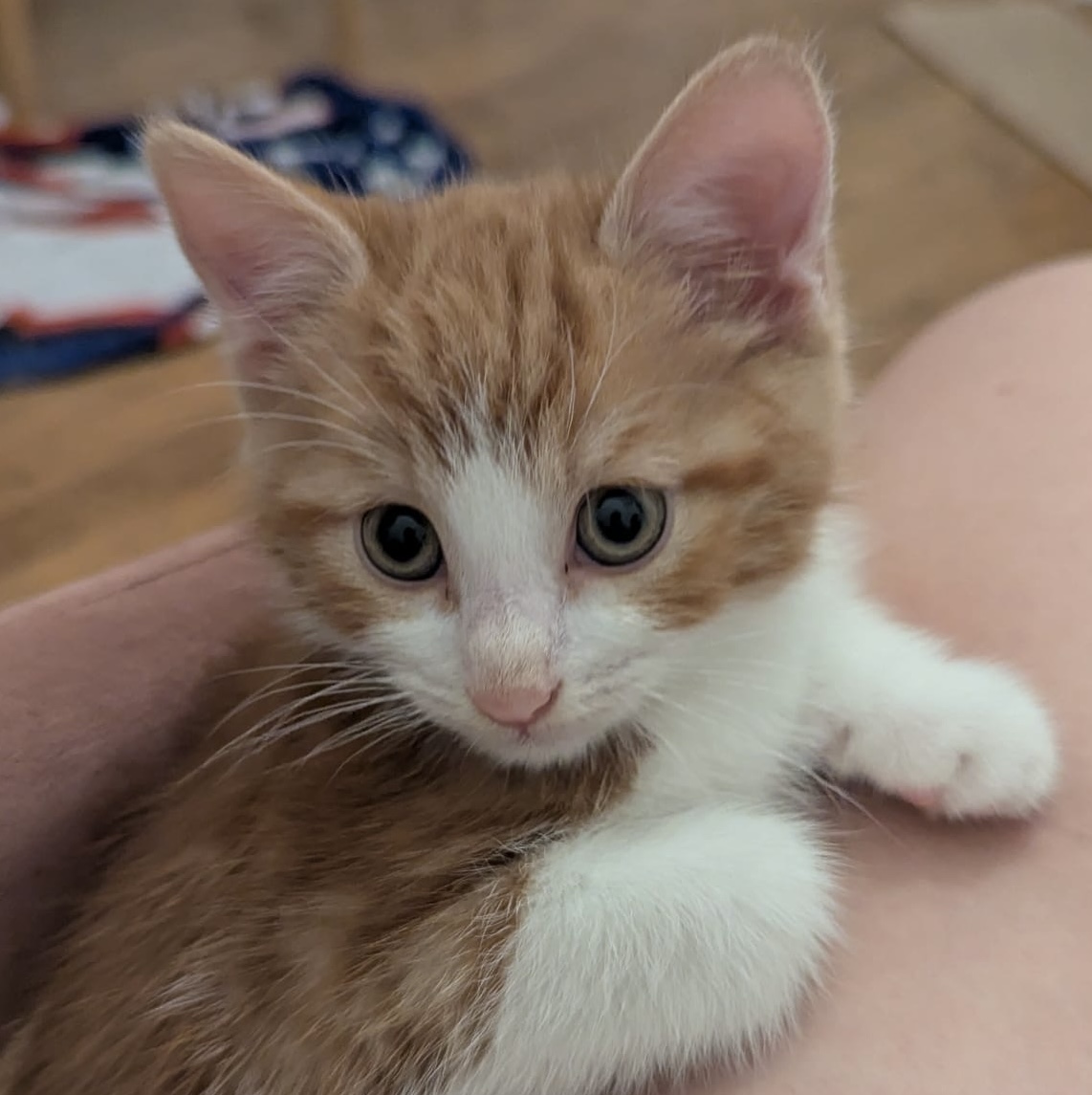 Il a depuis été adopté et mène une vie de câlins et de bonheur avec un copain chat et sa famille d’adoption.