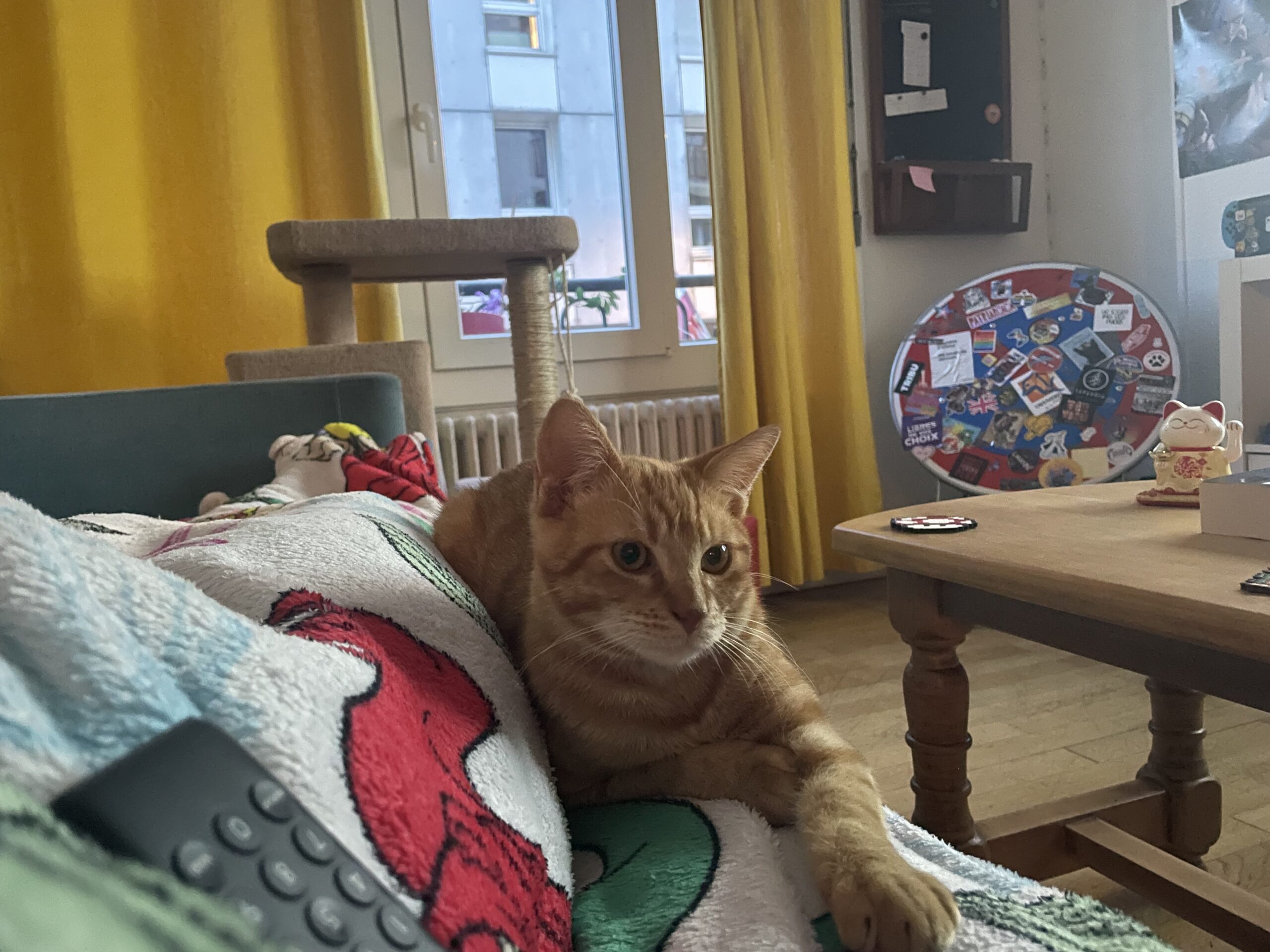 Elle est assez calme, contrairement à pas mal de chats ce n’est pas une « grimpeuse » (en tout cas pour l’instant !).