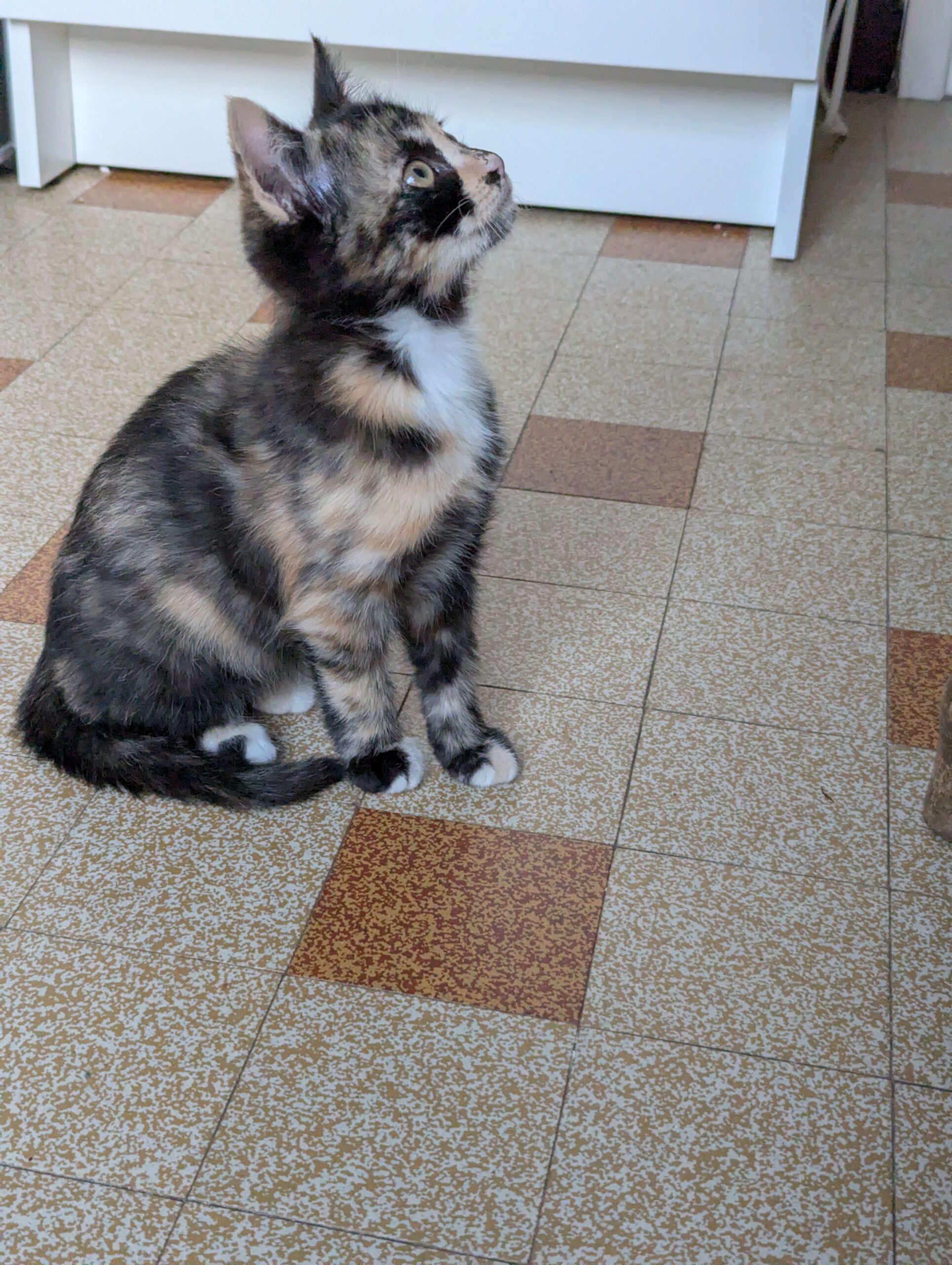 Gipsy est une jeune femelle , écaille de tortue qui est née  approximativement  autour du 1er octobre 2024. Elle a été trappée avec ses 3 chatons .